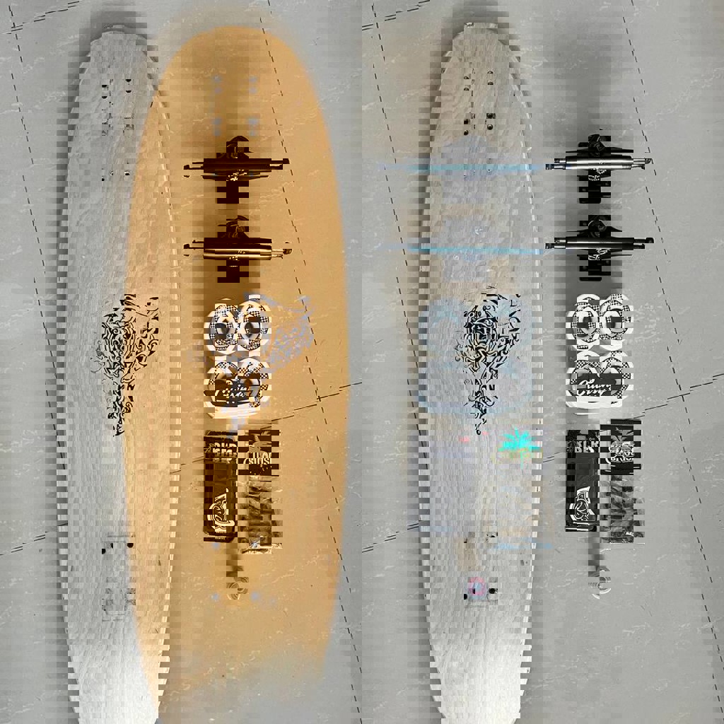 Что в сборе: 1) Дека Лонгбордическая 2) Шкурка Footwork Safari 3) Шкурка ЮНИОН Logo белая 4) Винты Eastcoast 1.5" для лонгборда 5) Подкладки Pig Piles 1/2" Hard Risers Black 6) Подвески Family Black 7) Подшипники Family PRO ABEC 8) Колёса Footwork CHECK 65мм 78A