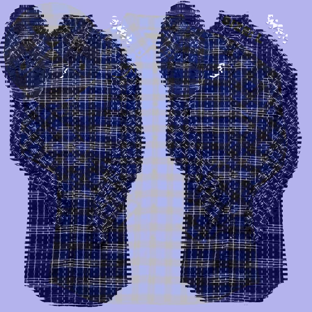 Рубашка в черно-сине-красную клетку. Размер M (на бирке L, но маломерит на размер). Как новая.