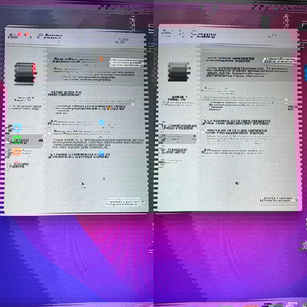 Intel Core i5 1.8 GHz (2-core), 8 GB RAM, 128 GB SSD, macOS Monterey. Подойдет для учебы, браузера, документов и простых задач. Нюансы: — аккумулятор требует замены/сервиса — работает небыстро — не для тяжелых задач — может нагреваться. В комплекте зарядка, но без вилки.