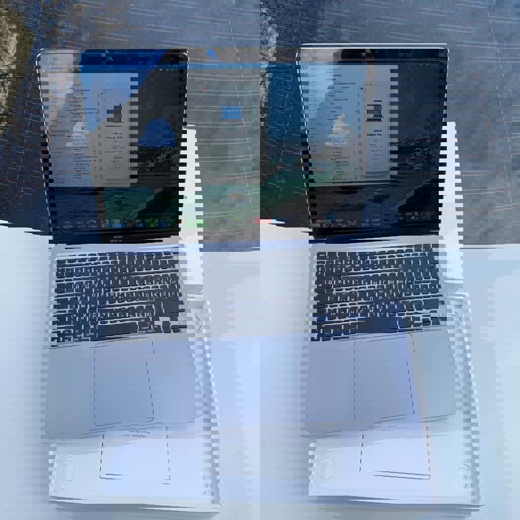 Серый, 13 дюймов, 8 ГБ оперативной памяти, 256 ГБ SSD, в идеальном состоянии. Не ремонтировался. Заряд батареи 88%. В комплекте оригинальный адаптер+Cable Box.