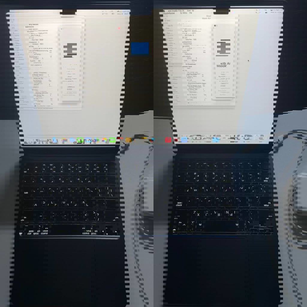 13 дюймов, 2024 Midnight, 8 ГБ оперативной памяти, 512 ГБ SSD, в хорошем состоянии. 100% рабочий. 94% заряда батареи, 185 циклов зарядки. В комплекте оригинальное зарядное устройство.