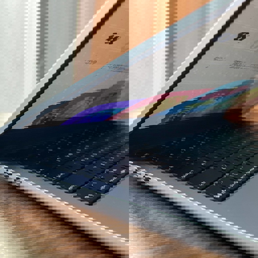 Устройство в отличном состоянии, идеальный внешний вид за исключением маленькой царапки (на фото видно). Аккумулятор 97%, 76 циклов, Английская клавиатура. Ему примерно полгода, есть чек покупки. Пользовался бережно, тяжелыми задачами не загружал, камень не перегревал, пользовался в основном фигмой. В комплекте оригинальный блок питания и провод MagSafe.
