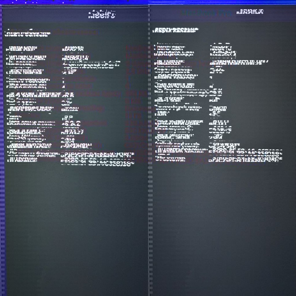 Продам MacBook Pro (Retina, 15-inch, Mid 2015) 💻 Все такой же производительный и шустрый 4-ех ядерный процессор Intel Core i7. Накопитель на 256 Гб. Супер яркий дисплей: Retina 15,4-дюймовый (2880×1800). Идеально коннектится с любым типом монитора при необходимости. Имеется родной зарядник (поврждена оплётка в одном месте, но заряжает). Циклы перезарядки: 1046. Брал с рук в 2022-ом за 350 евро. Все характеристики на фото. Пара вмятин на передней крышке и треснул лого, царапины на задней крышке и нет двух ножек, олеофобока в выключенном состоянии, видно, что подстерлась, во включенном состоянии не мешает, резиновая рамка вокруг экрана частично разрушилась (не особо заметно).