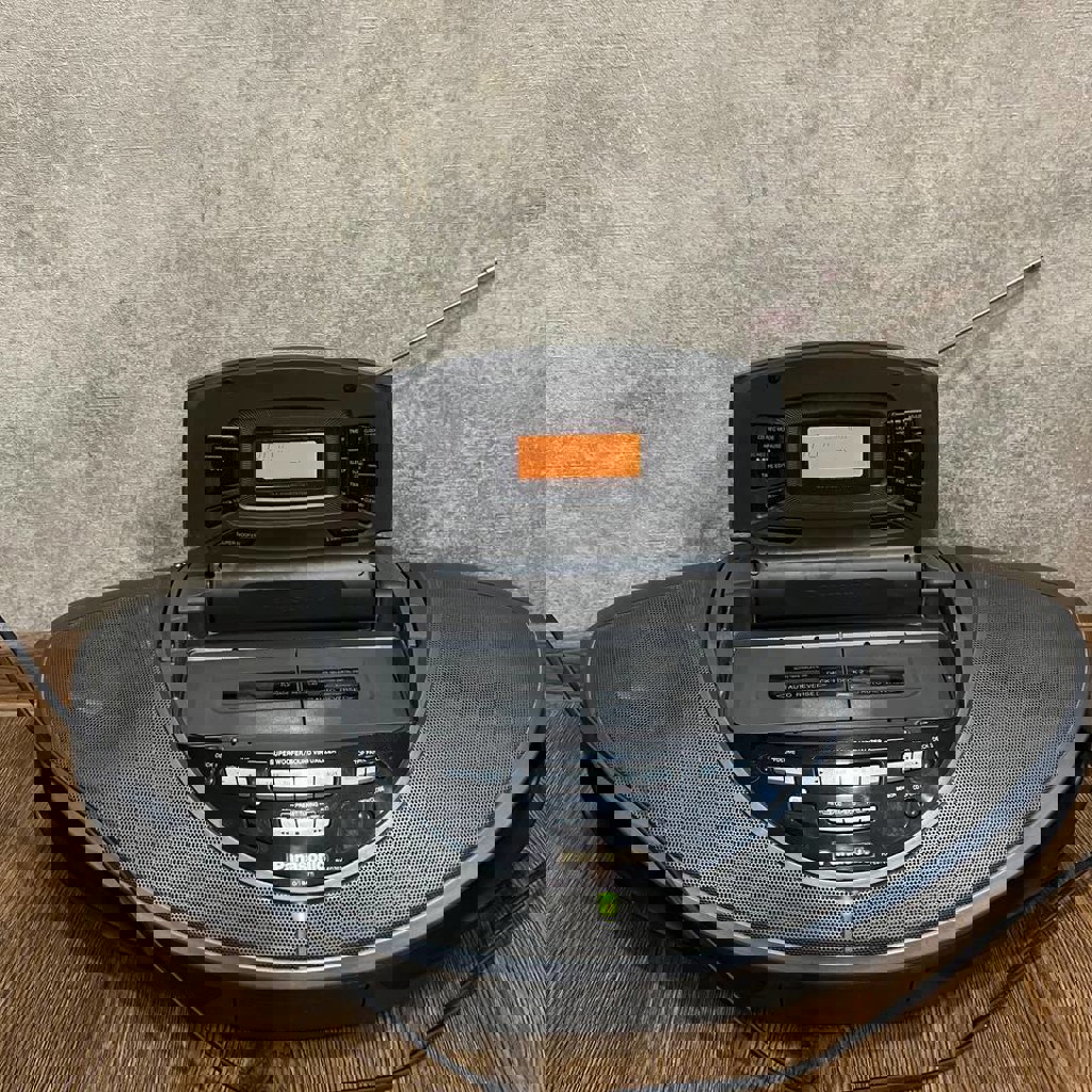 Магнитола Panasonic, радио + двойная кассета + AUX. Включается, радио ловит, AUX играет — слушайте Spotify через корпус из 90-х. Кассеты не тестировал — продаю «как есть». Состояние на фото, самовывоз.