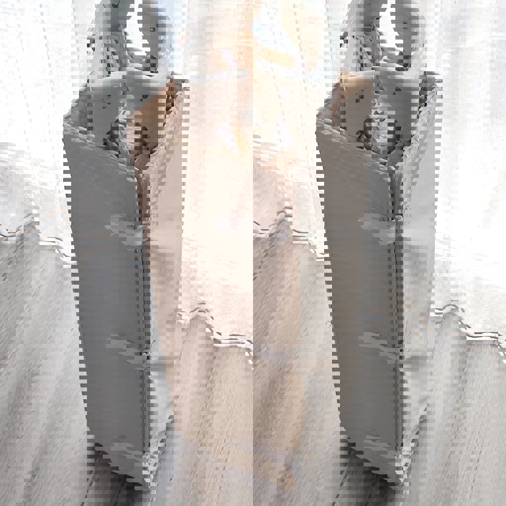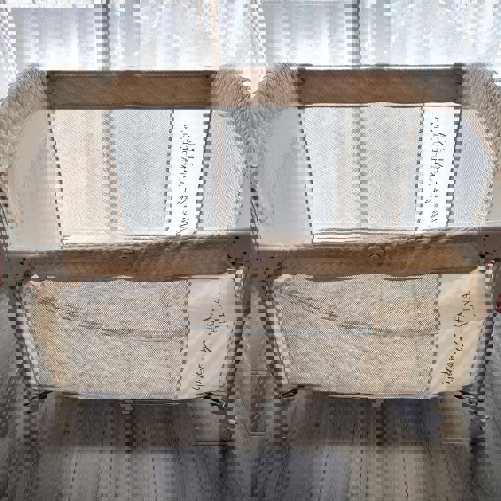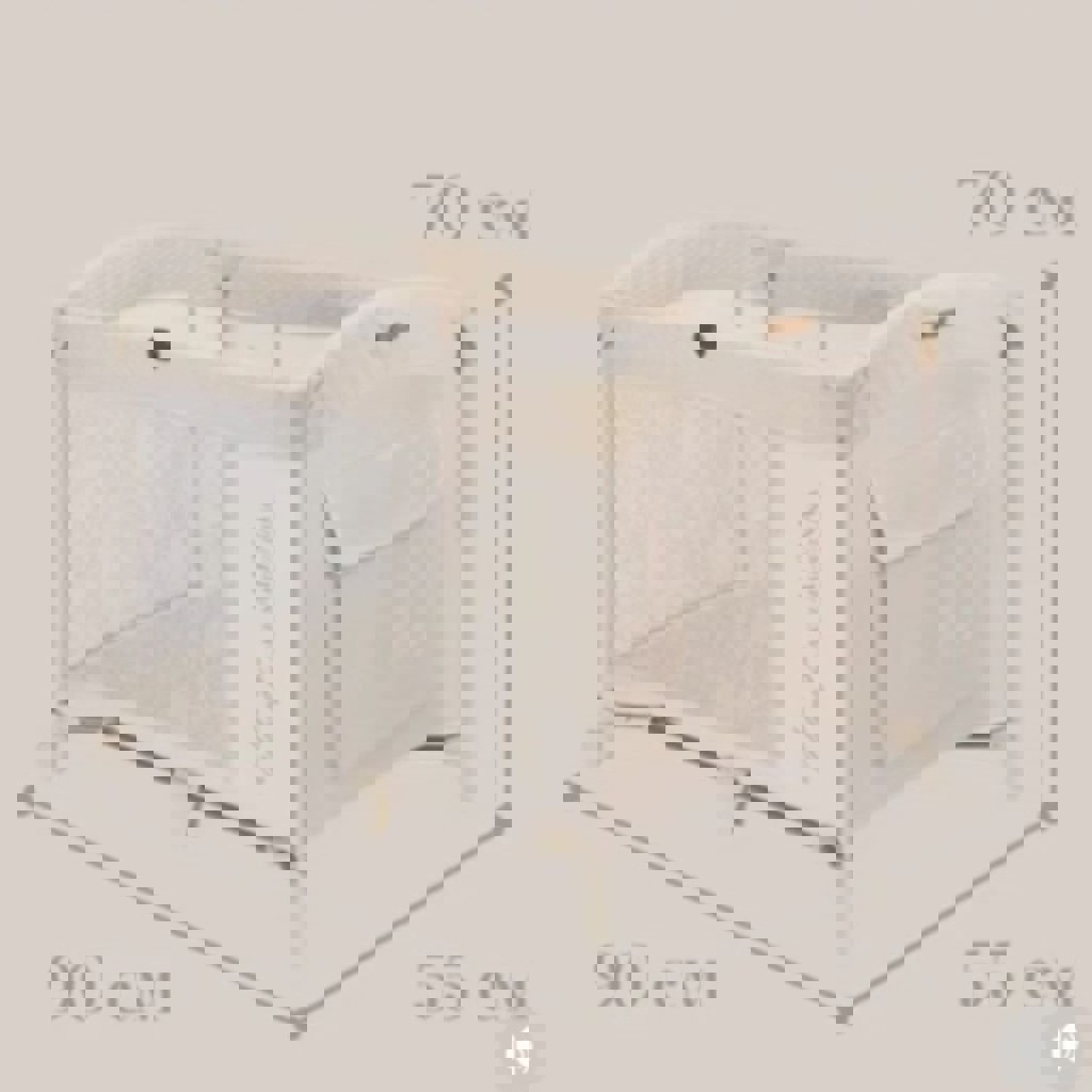 Стенка манежа опускается наполовину и позволяет установить его рядом с кроватью родителей. Колёса помогают перемещать манеж-кроватку по дому. Для безопасности острые углы отсутствуют, а верхняя часть – мягкая, сшита из легкой в уходе и водостойкой оксфордской ткани. Компактно складывается. Авторский дизайн станет отличным дополнением интерьера.