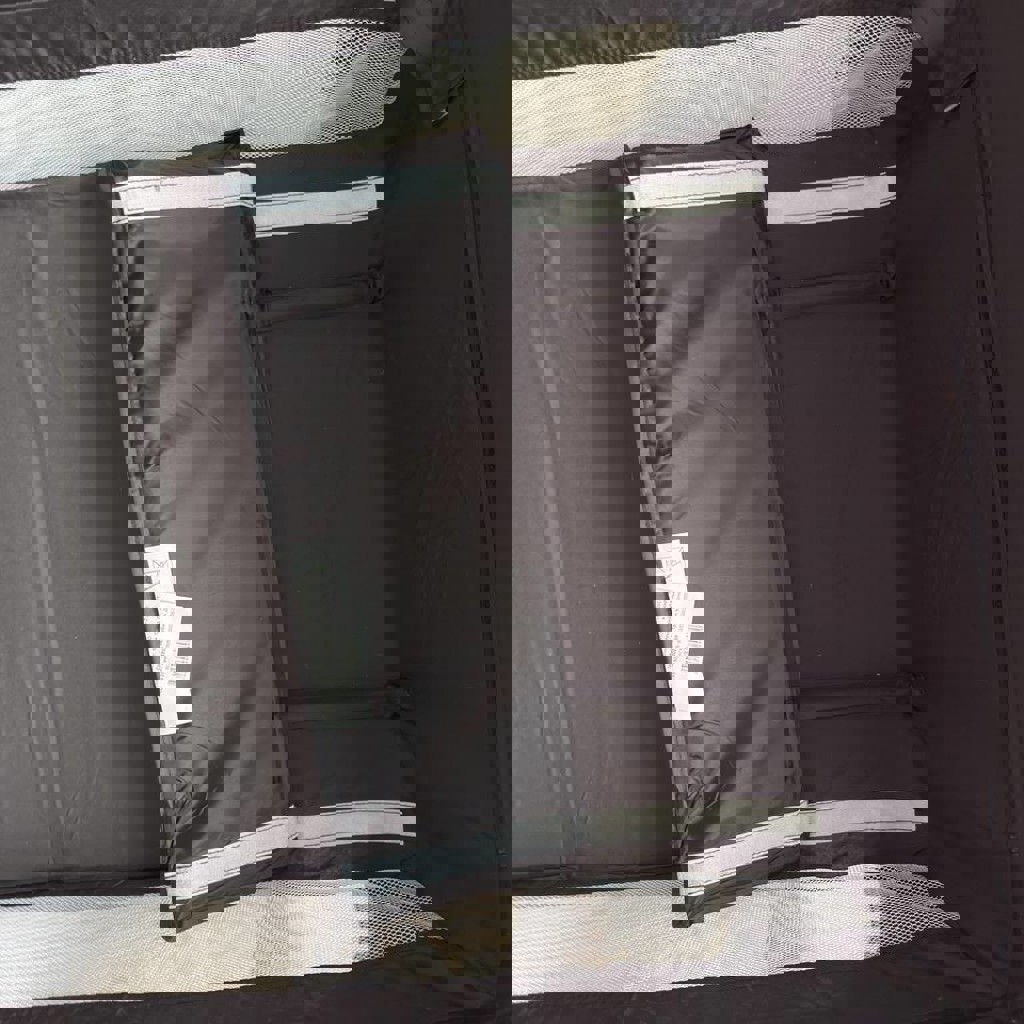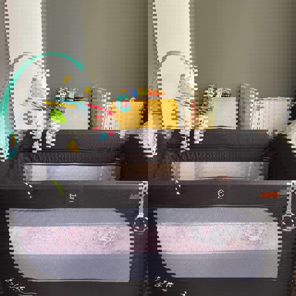 Стильный манеж в отличном состоянии, размеры: 96,5 x 96,5 x 76 см (развёрнутый), складной — 27 x 27 x 92 см. Съёмный матрас, сетка для вентиляции, боковая молния, вес ~12,4 кг. В комплекте мобиль.