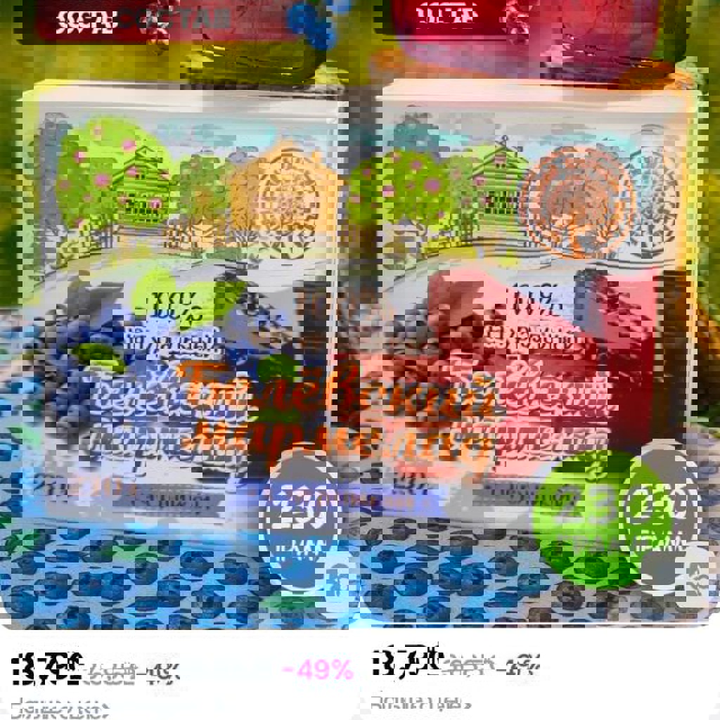 Мармелад натуральный Белевский, вкус черника, 230 гр (1 упаковка). Постный, натуральный, диетический продукт.