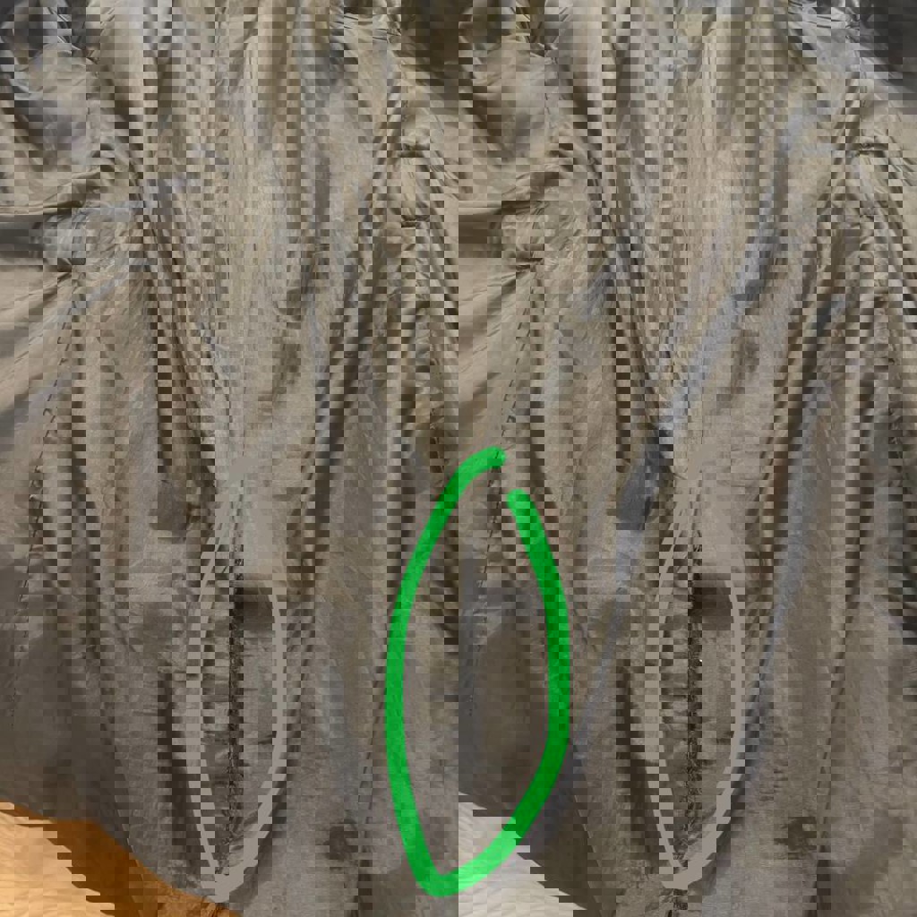 Немного разошлась подкладка внутри. Снаружи все ок
