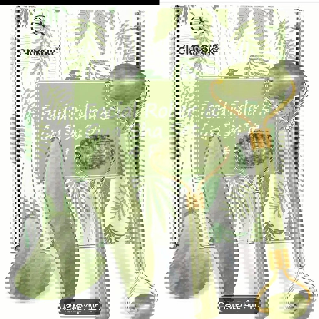 Набор из 4 предметов: 2 нефритовых массажных ролика для лица и 2 скребка Гуа Ша. Подарочная упаковка.