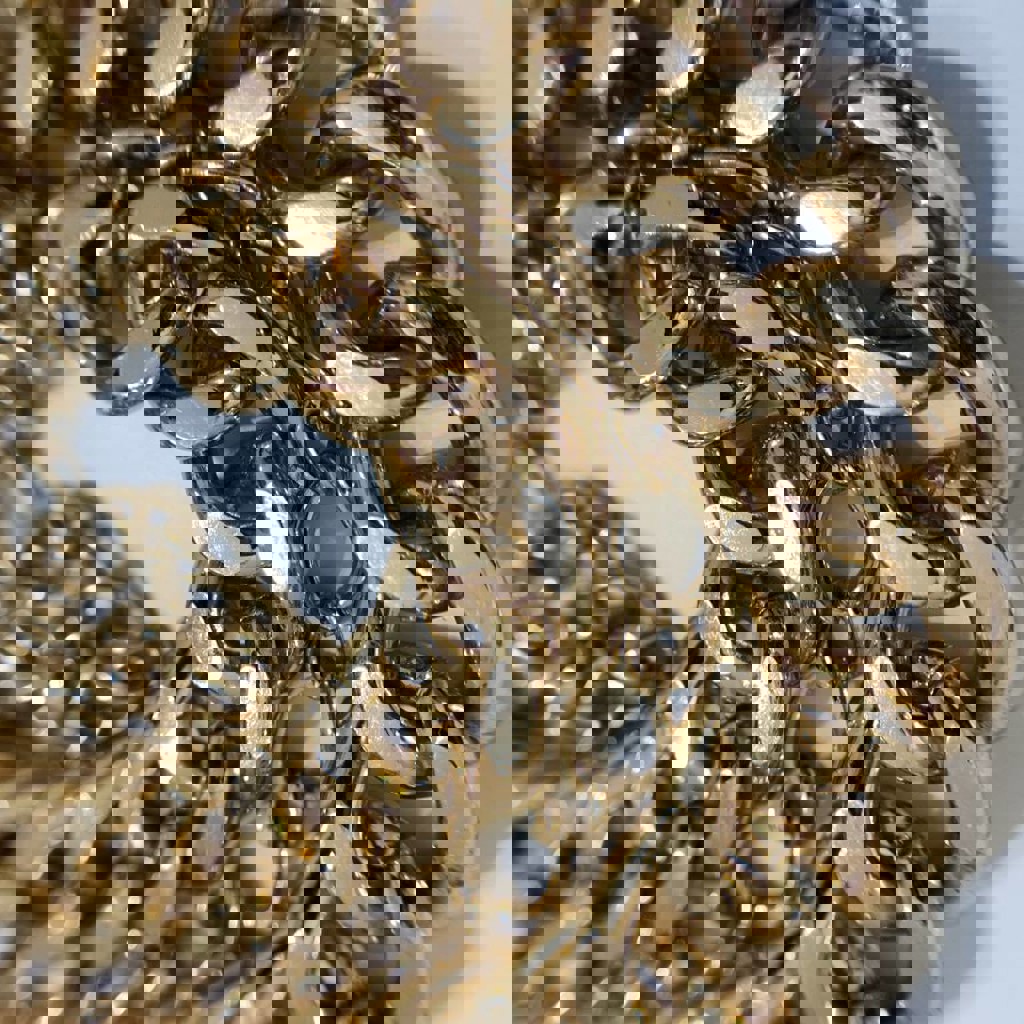 Модель выполнена в виде двух уровней: массивная цепь крупного плетения и более тонкая цепочка. Колье-чокер ложится аккуратно, под горлышко. Тяжелое, статусное украшение (100+ г), ощущается на шее и не выглядит «дешевым» пластиком. Длина основной части около 35-37 см. (есть дополнительная цепочка-удлинитель 7-8 см, чтобы идеально отрегулировать посадку) Качественный бижутерный сплав золотистого цвета с глянцевым блеском. Это универсальный «statement piece». Шикарно смотрится как с базовой белой майкой и джинсами, так и с вечерним черным платьем или оверсайз жакетом.(не носилось, но бирки нет)