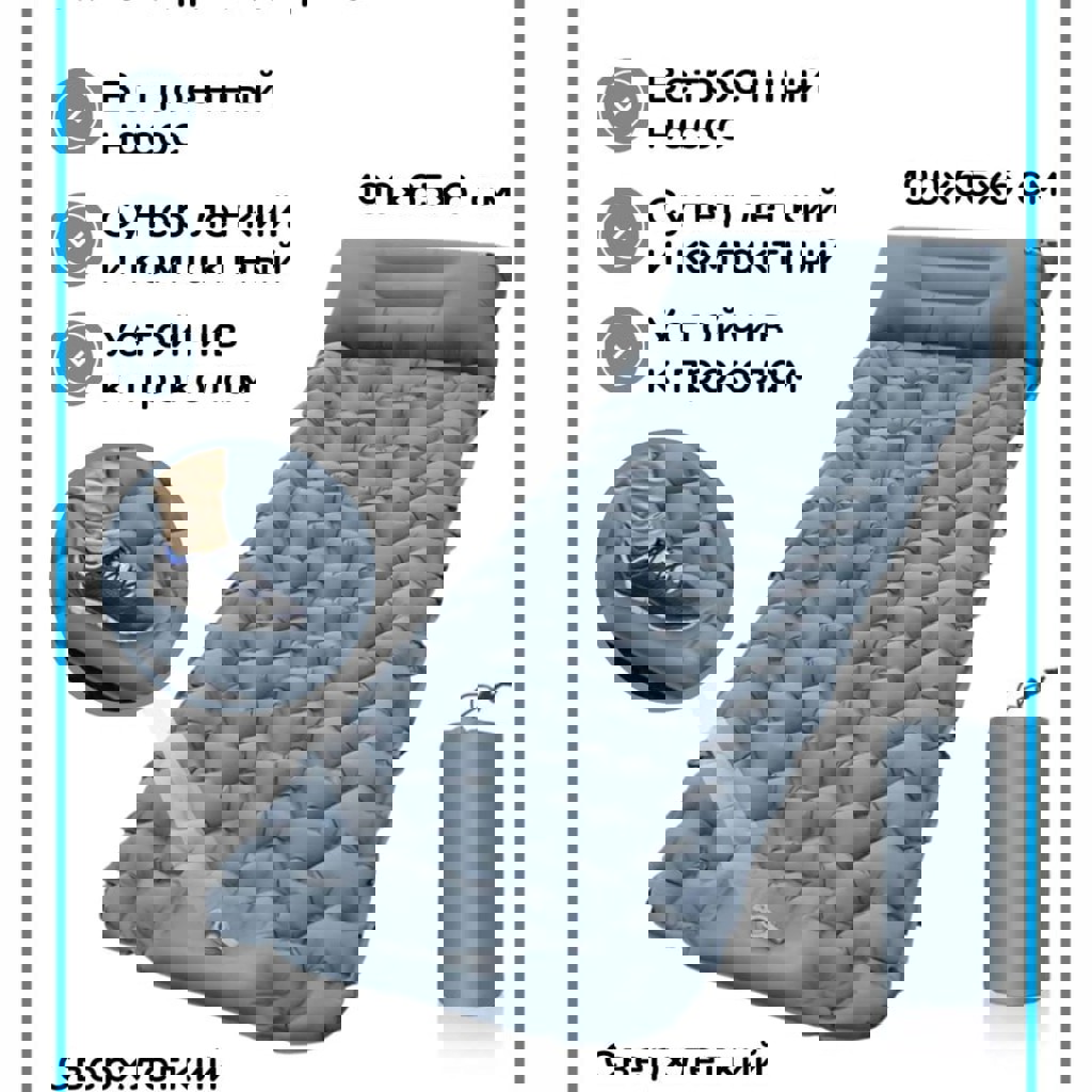 Надувной (самонадувающийся механический, встроенным насосом) коврик-матрас 2 шт. (цвет оранжевый и серый) в отличном состоянии (без дефектов, 1 раз пользовались). Размер-длина 198 см, ширина - 95 см, высота 9 см.