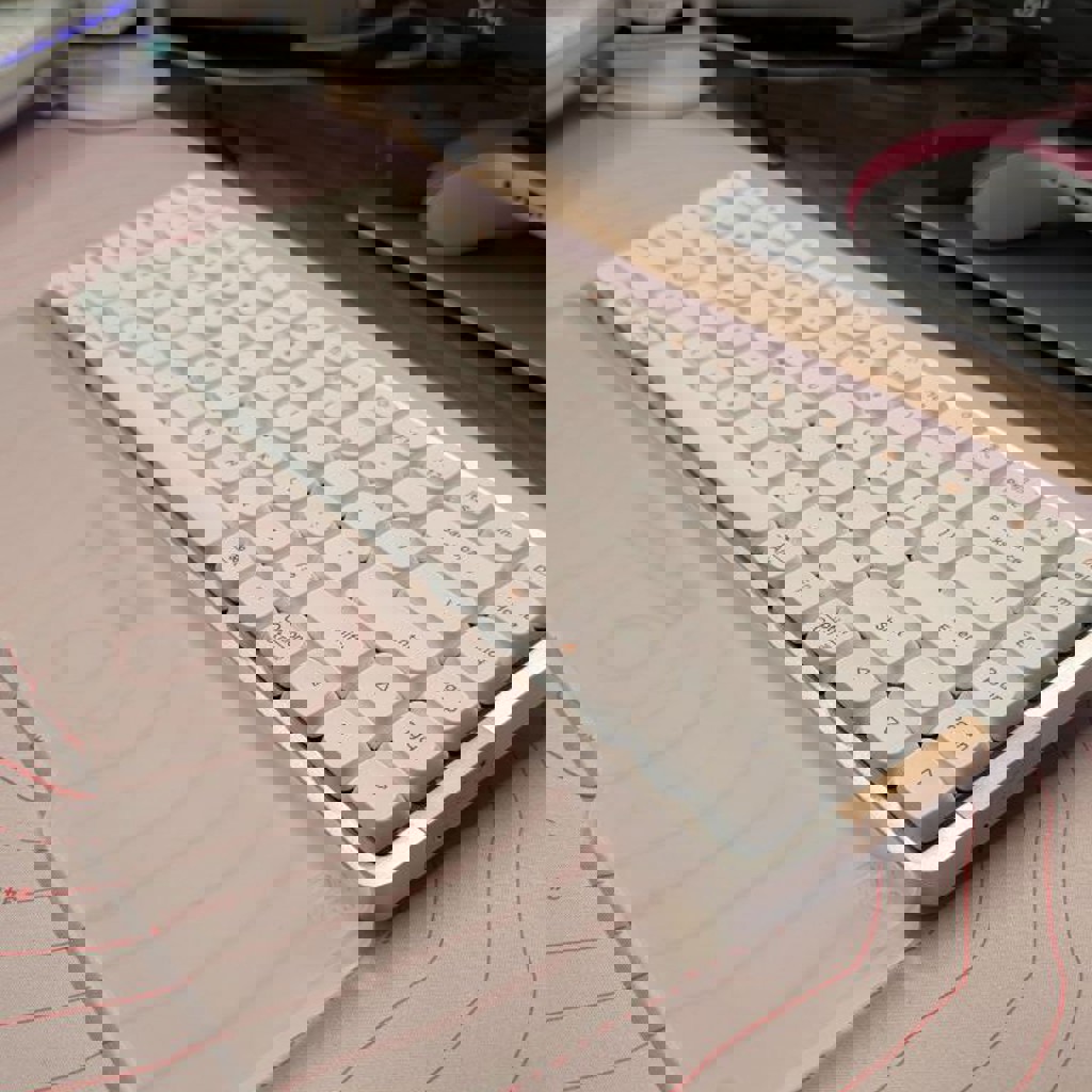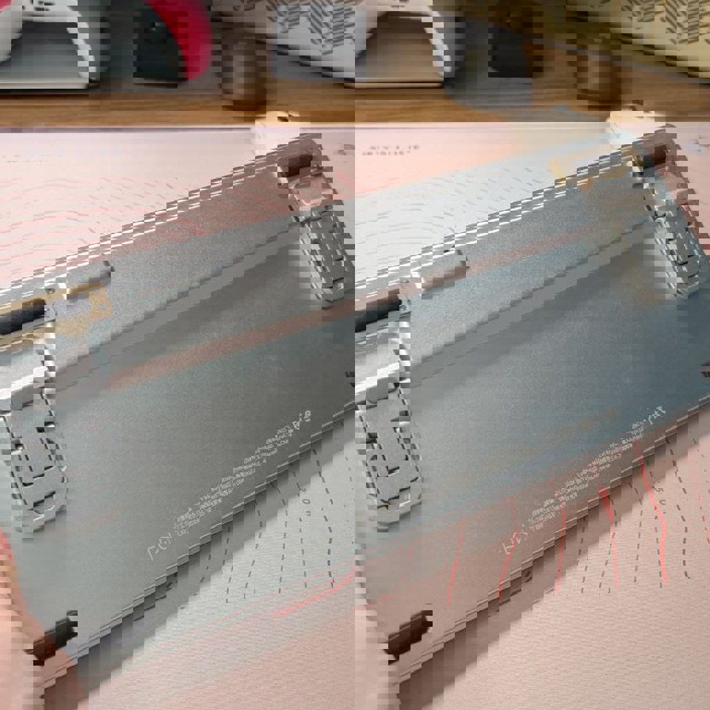 Тихие свичи ghost, состояние супер, работает идеально как по блютузу, так и по проводу. Нюанс - наклеила на заднюю панель доп ножки, потому что мне было очень низко рукам. Можно отклеить (могу изопропиловый спирт для этого одолжить), хотя как по мне они хорошо вписались, и с ними удобнее.