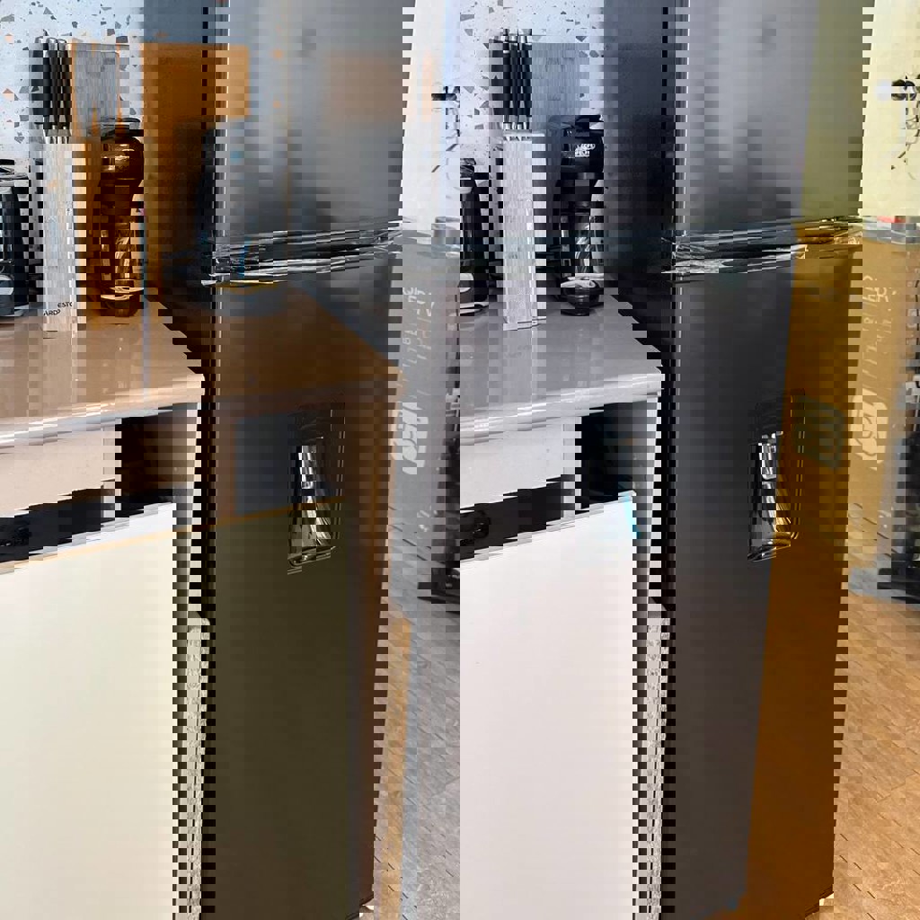 Продается новый (3-месяца в использовании) Холодильник Midea MDRT294FGF28W. Все идеально работает. Причина продажи - перепланировка кухни. Нужен поменьше холодильник. Высота холодильника — 143 см, ширина — 55 см, глубина — 55 см. Гарантия 3 года до 28 ноября 2028 года. Общий объём составляет 198 литров, из которых 158 литров — холодильное отделение и 40 литров — морозильная камера. Потребление энергии — 214 киловатт-часов в год. Уровень шума — 40 децибел. 1 компрессор, хладагент — изобутан R600a. Система разморозки: капельная в холодильнике и ручная в морозильной камере. Имеется диспенсер для воды и встроенная LED-подсветка. Автономная работа при отключении питания — до 15 часов. Цвет корпуса — чёрный. Коробка в наличии.