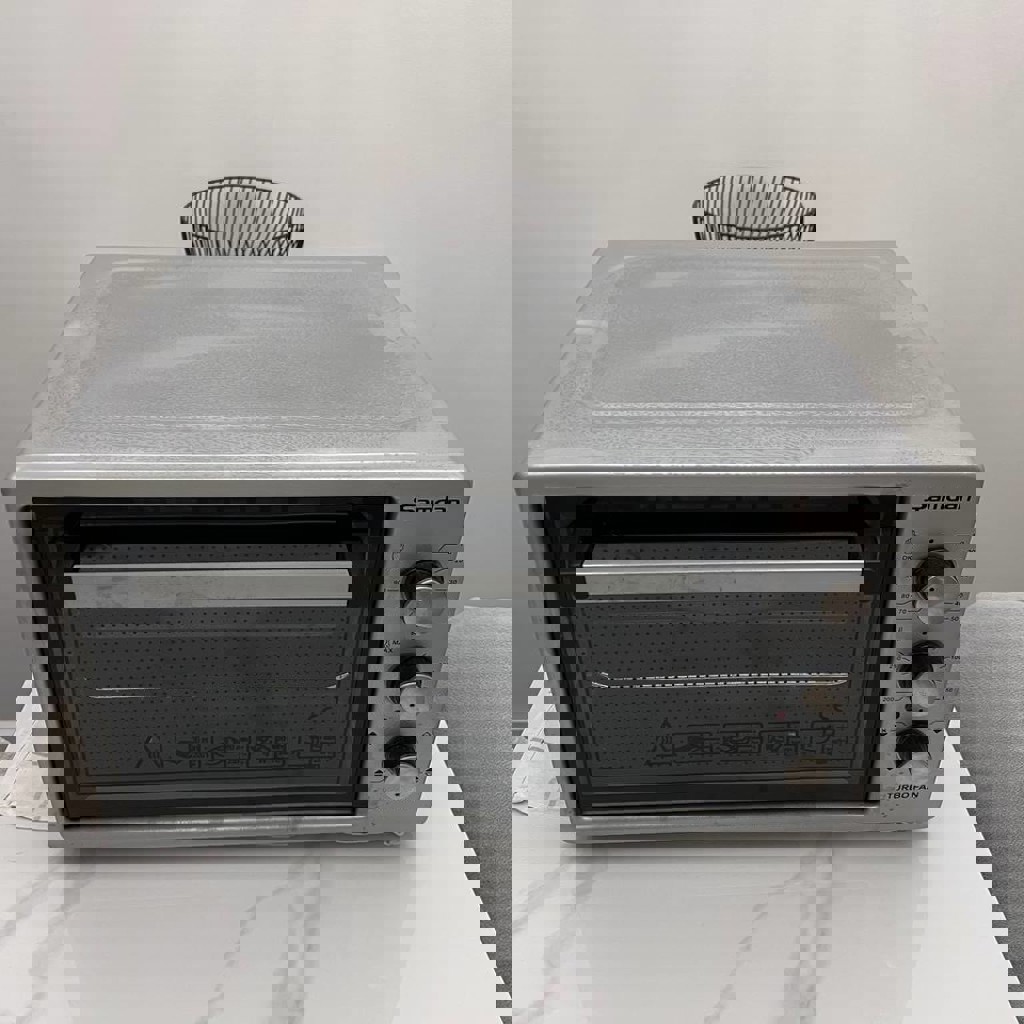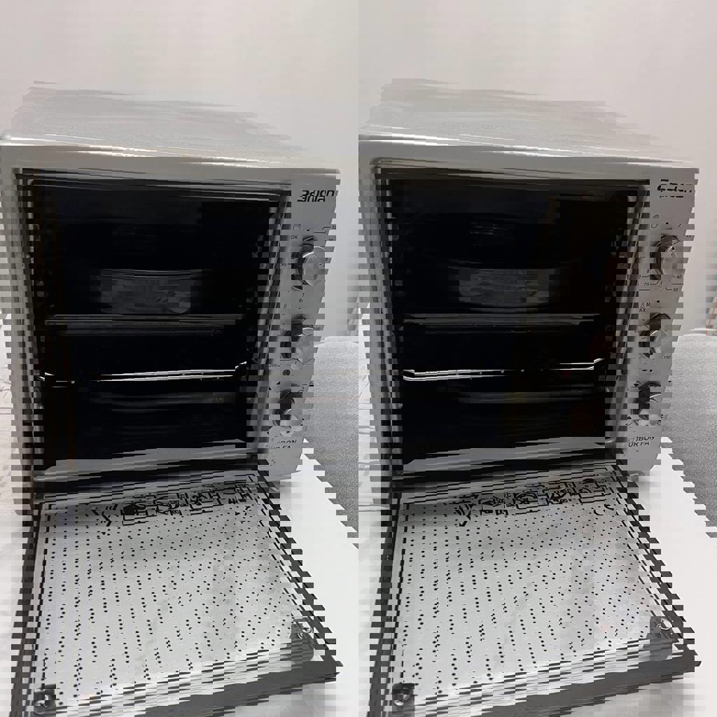 46 литров, 1300W. Состояние хорошее, всё видно на фото. Внутри чистая. Очень удобная, работает прекрасно, продаем так как просто перестали пользоваться. Есть коробка для удобной перевозки, противень и решетку из комплекта тоже отдадим.