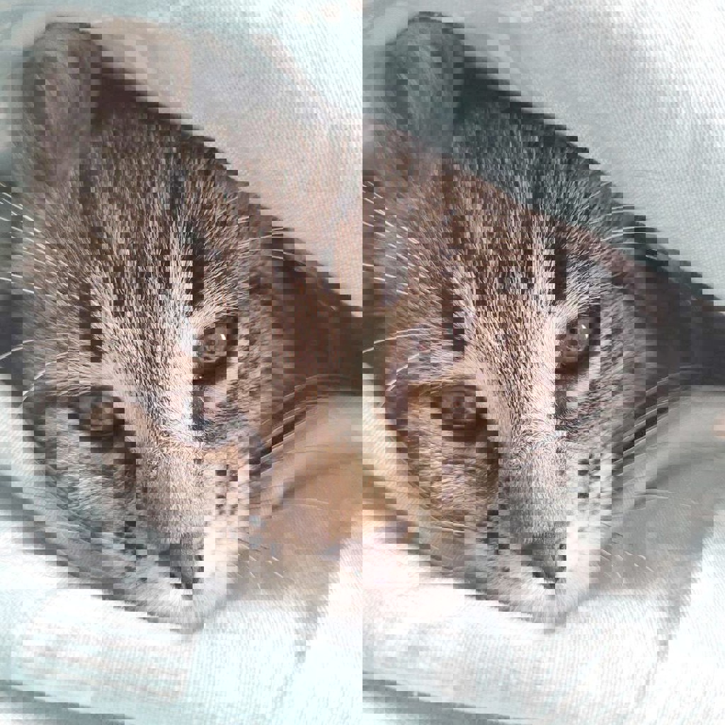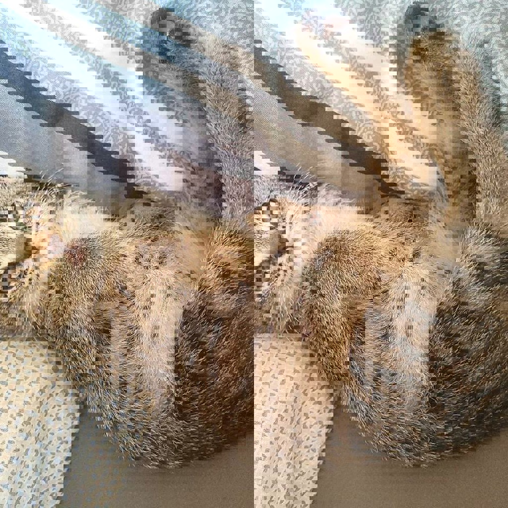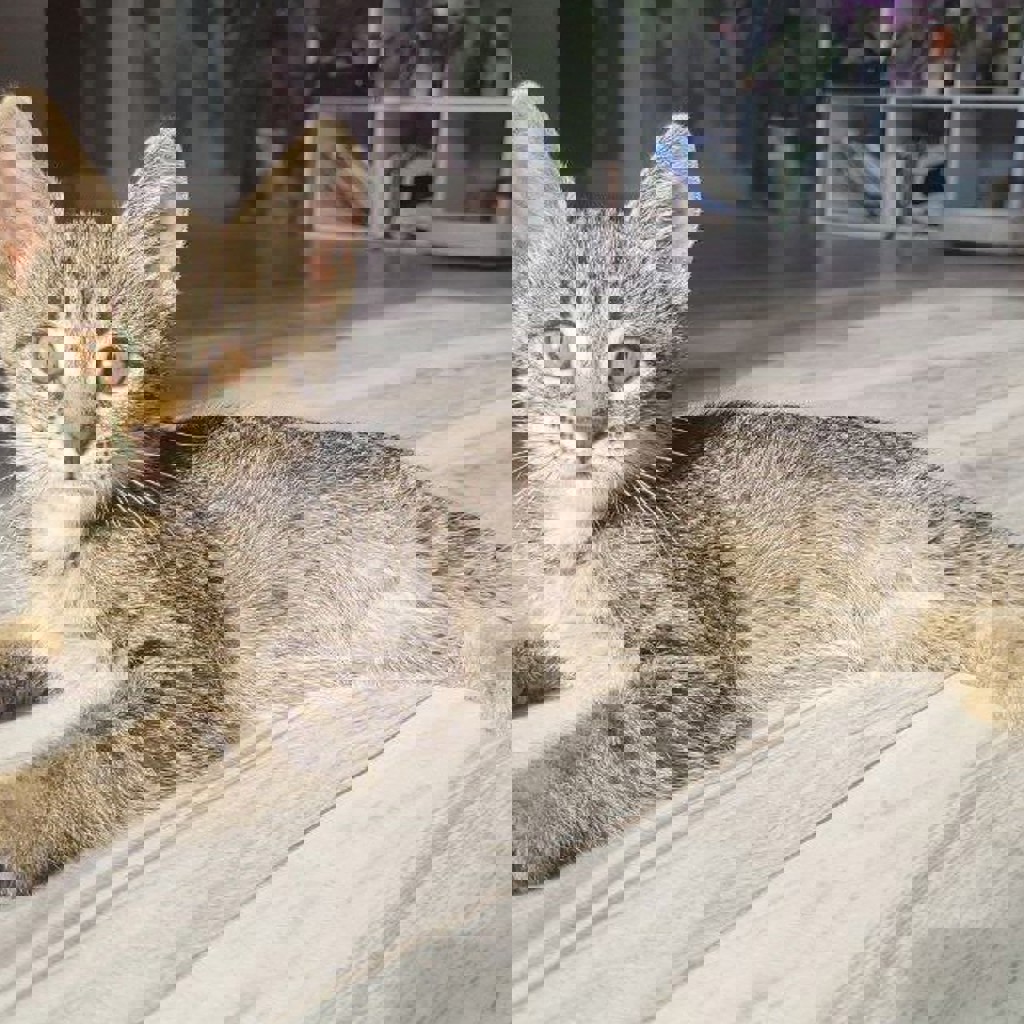 Спасенная с улицы, выкормленная, подросшая и уже очень самостоятельная, игривая девчонка. Ест сухой корм, но в целом всеядна (грызла даже капусту). К лотку приучена. Возраст ~2,5 месяца