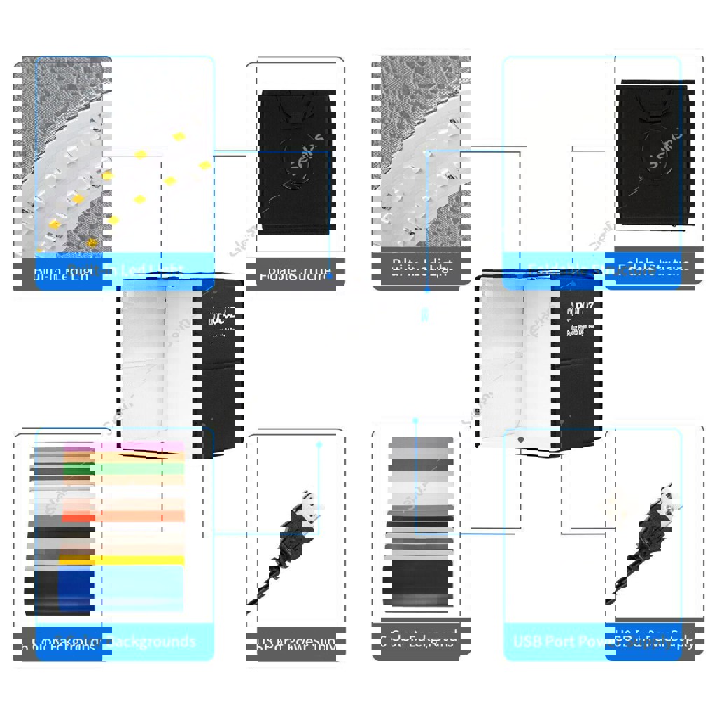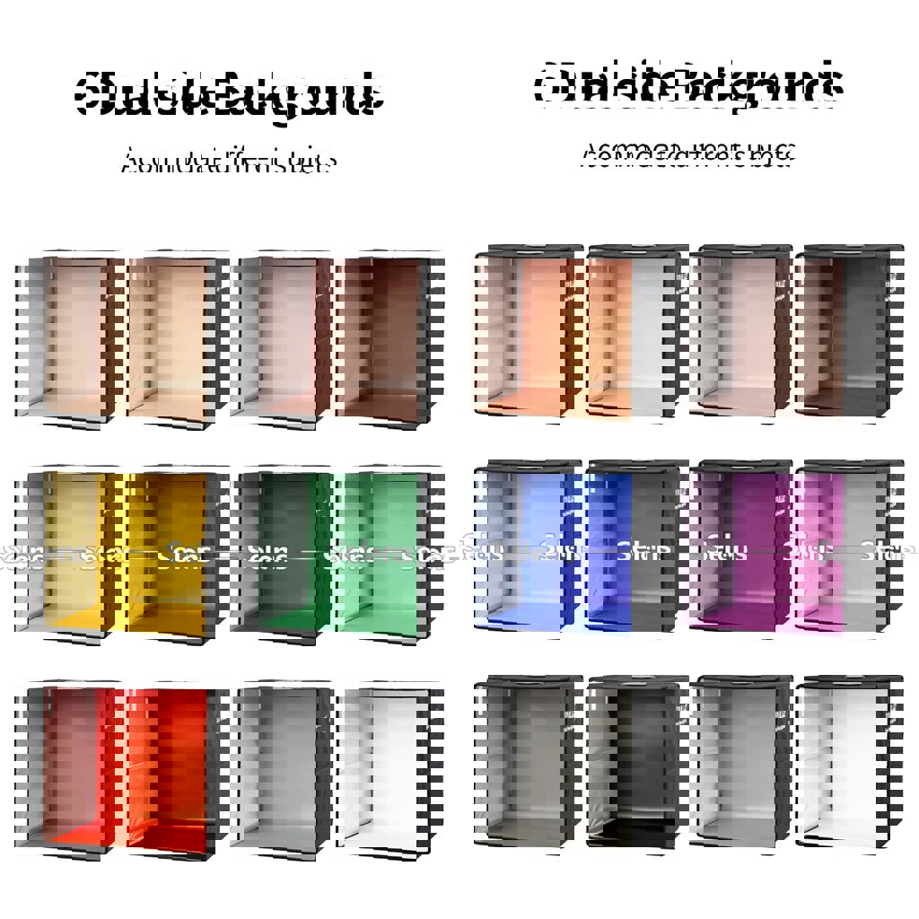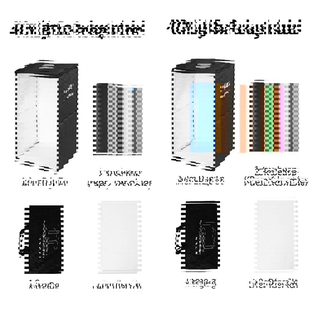 Идеально для съёмки товаров дома или для онлайн-продаж (Instagram, Etsy, OLX, eBay и др.). Отличный вариант для ювелирных изделий, аксессуаров, часов, косметики, игрушек и любых небольших предметов. Характеристики: Размер: 40×40×40 см Встроенный LED-свет (144 лампы, CRI >95) 3 режима света: холодный, тёплый, нейтральный Регулировка яркости от 1% до 100% Два окна для съёмки (спереди и сверху) Сборка за 3 секунды. Комплектация: Фотобокс 40 см, 6 двусторонних фонов (12 цветов), Диффузор, Чехол для хранения, USB кабель. Отличный выбор для продавцов, блогеров и мастеров handmade.