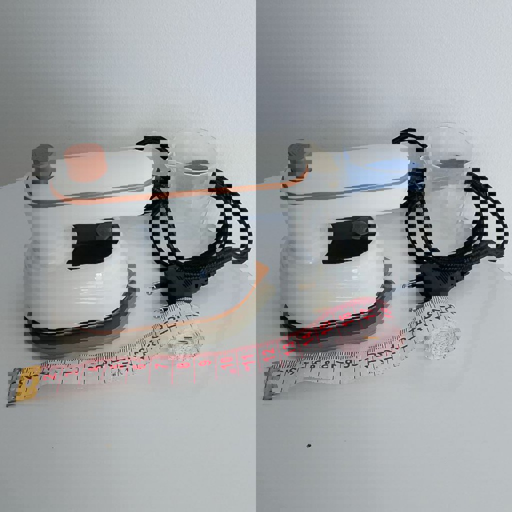 Утюг-малыш - 10 лари. В пользовании несколько раз, воду распыляет. Ручку можно регулировать в разные стороны. Низ 12 см. Шнур 120 см.
