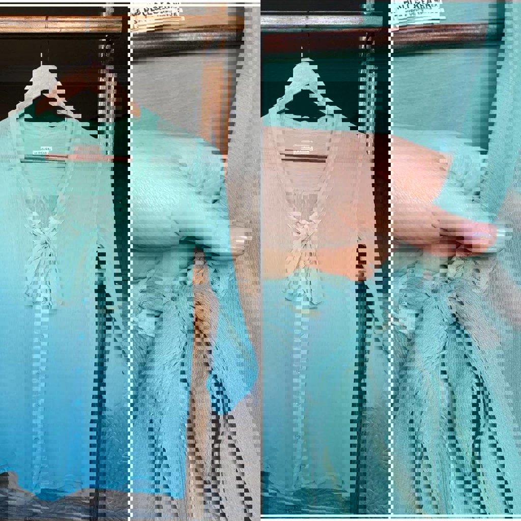 Мятная блузка с бантом от pull&bear, размер s