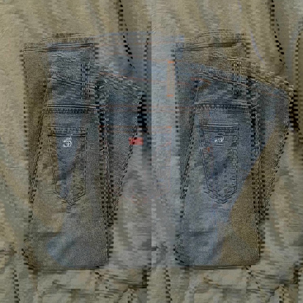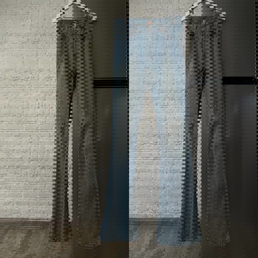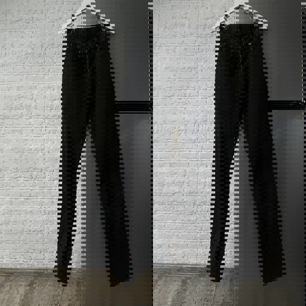 Размер 28. Верх обяжка, клеш от колен, не стретч. Подходит на рост 170-185 см.