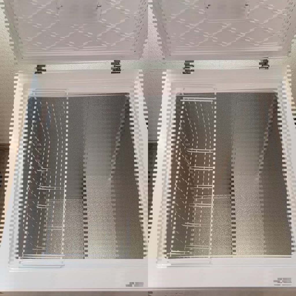Морозильный ларь в хорошем состоянии. Есть небольшие царапки от транспортировки снаружи. Эксплуатировался около месяца.