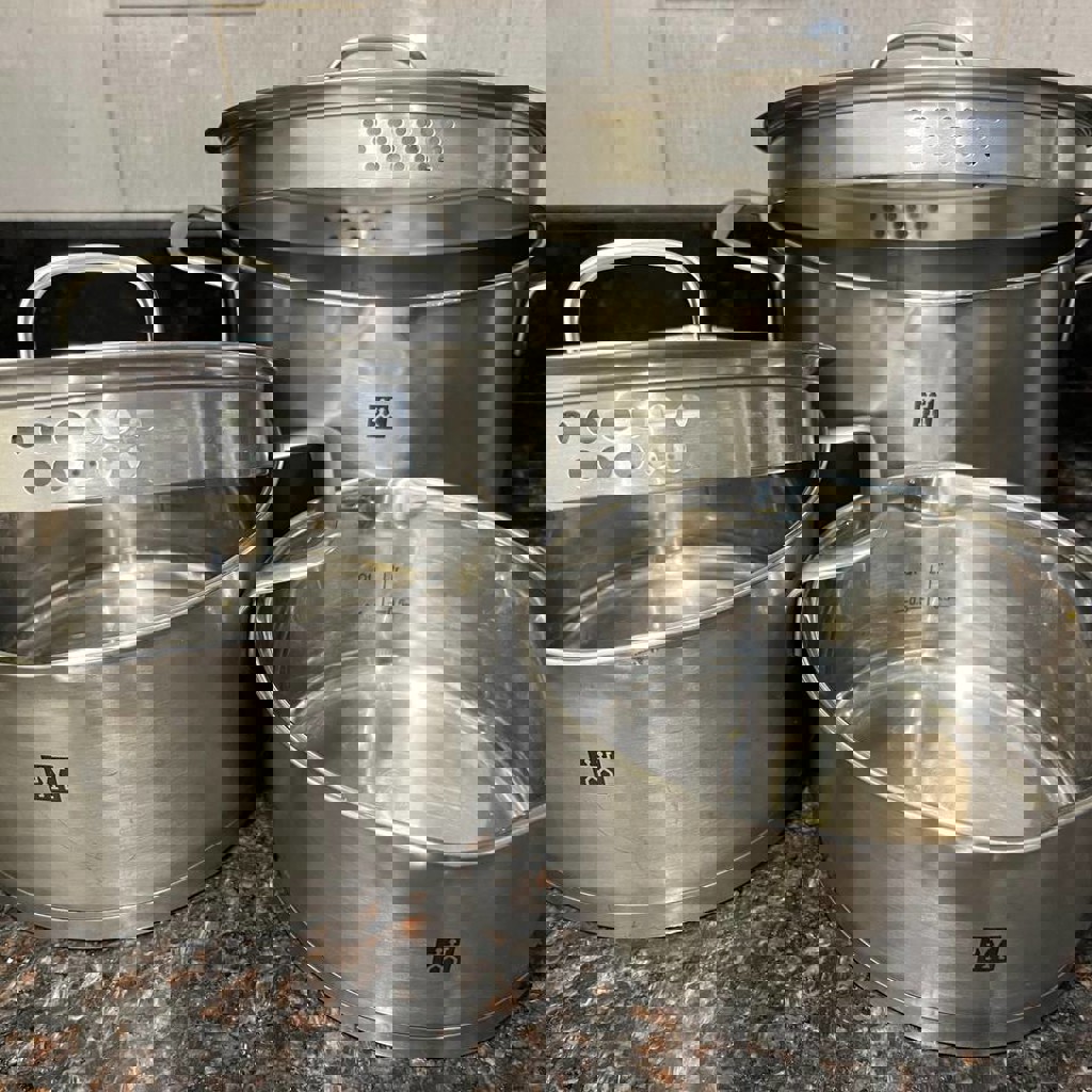Набор кастрюль из нержавеющей стали.