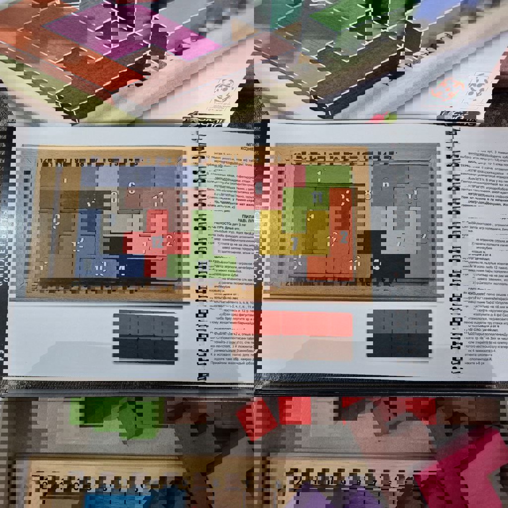 Очень увлекательная головоломка (пазл/настолка/настольная игра), развивает пространственное мышление, интересно как самым маленьким детям, так и взрослым. Разные задания. В интернете много отзывов и обзоров как играть. В отличном состоянии, немного замят уголок коробки.