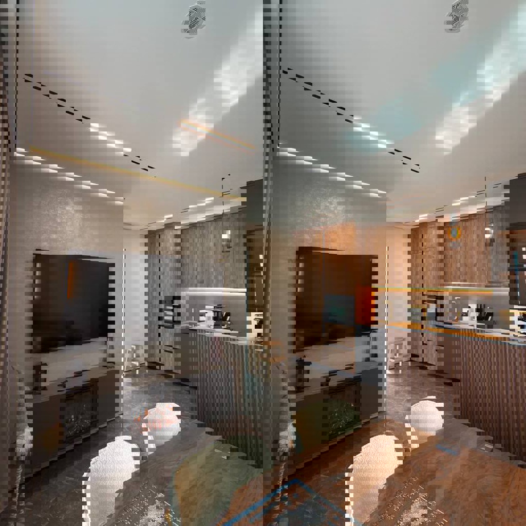 Современные световые решения, сложные конструкции и ниши, качественные полотна премиум-класса, чистый монтаж за короткие сроки.
