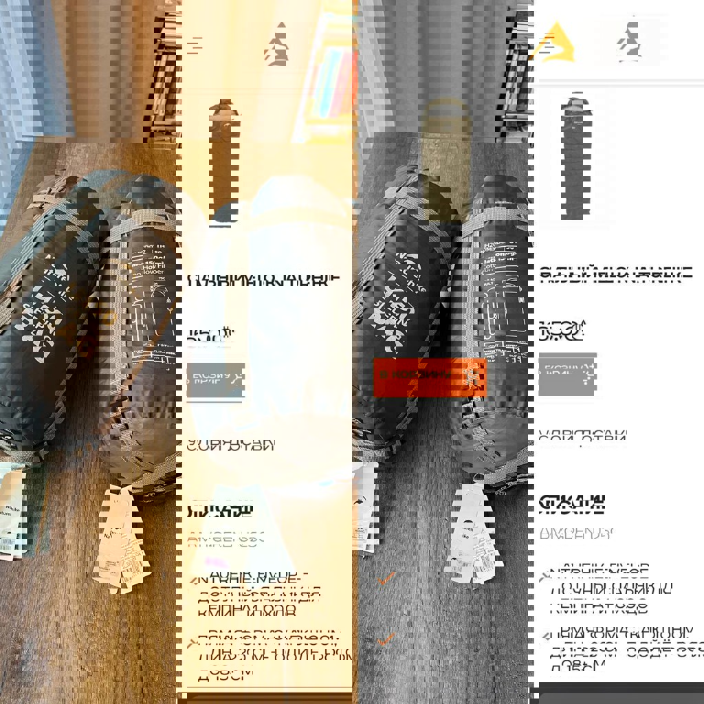 Один раз были в пользовании. Состояния новых. • Сезон: весна/лето/осень • Темп.: комфорт +11 °C / лимит +7 °C / экстрим -6 °C • Размер: 220×75 см (разложенный) / 22×43 см (в чехле) • Вес: 1.1 кг.
