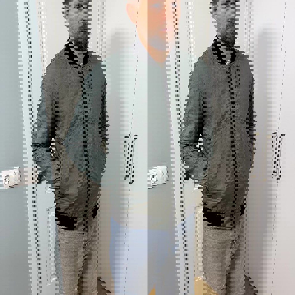 Размер М. В отличном состоянии, теплая, тянется, если поднимать руки. Двусторонняя.