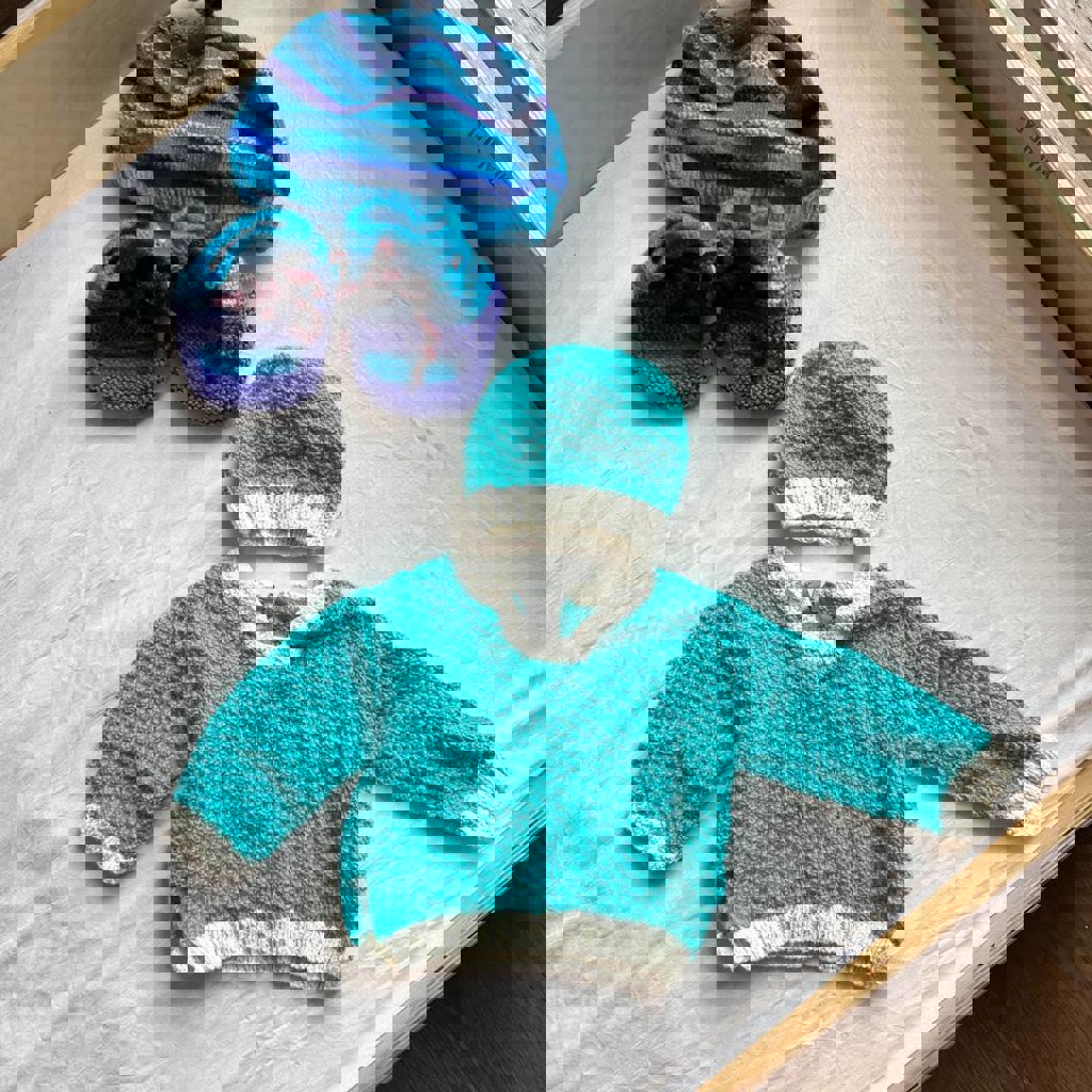 Вязаные вещи (свитер, шапки, пинетки) бесплатно.