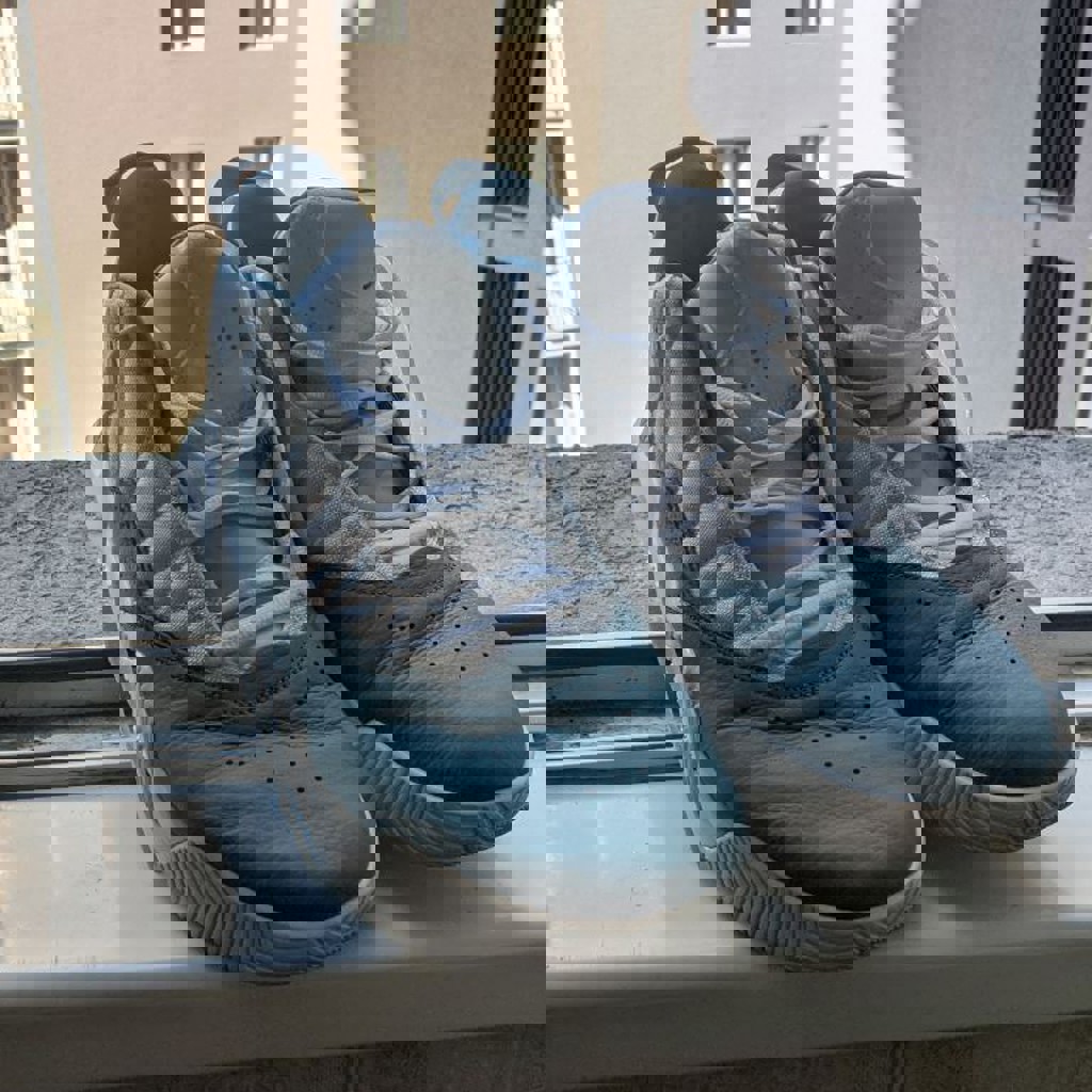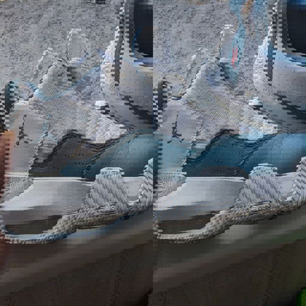 Продаю лишние кроссовки Nike air Jordan в отличном состоянии, бело-голубые, надевались раза 3 от силы, без коробки, размер US 12, EU 46.
