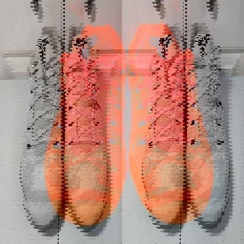 Модель Nike Kobe EM Low Peach, именная линейка Kobe Bryant. Размер: 44 (EU). Состояние: 9/10 (очень хорошее, минимальные следы носки). Цвет: Peach / оранжево-персиковый с черными и зелеными элементами. Возможно отправка.