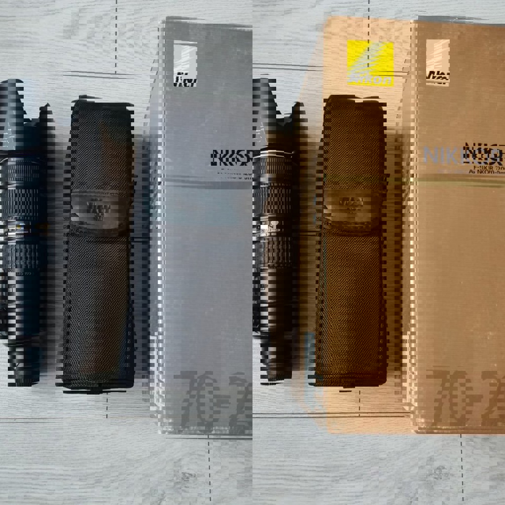 Этот объектив резче, с быстрым фокусом и контрастнее относительно первой версии VR. Техническое состояние 10/10: Зум работает плавно, линзы чистые, фокус идеальный, стабилизатор работает исправно. Внешнее состоянии 8/10: Потёртости на корпусе от ношения на разгрузке. Комплектация полная: бленда, крышки, чехол, коробка и прочее. Также вместе с объективом можно приобрести FTZ адаптер.