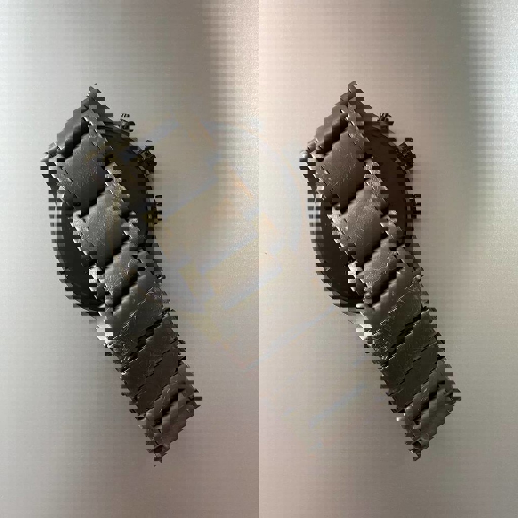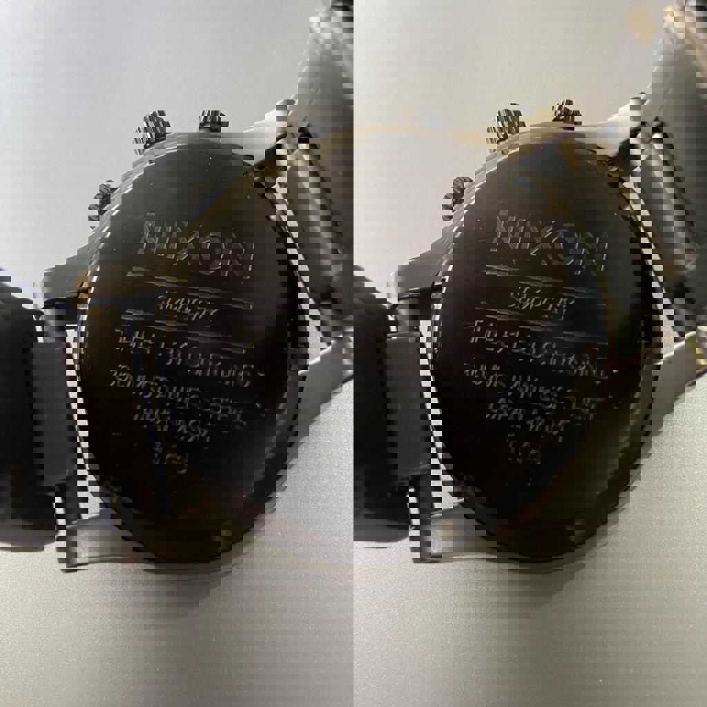 Оригинальные часы Nixon 51-30 Chrono в стильном матовом чёрном цвете с тёмно-серым циферблатом: японский кварцевый механизм (батарейка), хронограф + отдельный секундный циферблат + дата, крупный корпус 51 мм, нержавеющая сталь, водозащита 300 м, вращающийся безель, завинчивающаяся заводная головка, стальной браслет с надёжной застёжкой. Из минусов - потертые и не хватает звена на ремешке, поэтому налезут не на каждую руку.