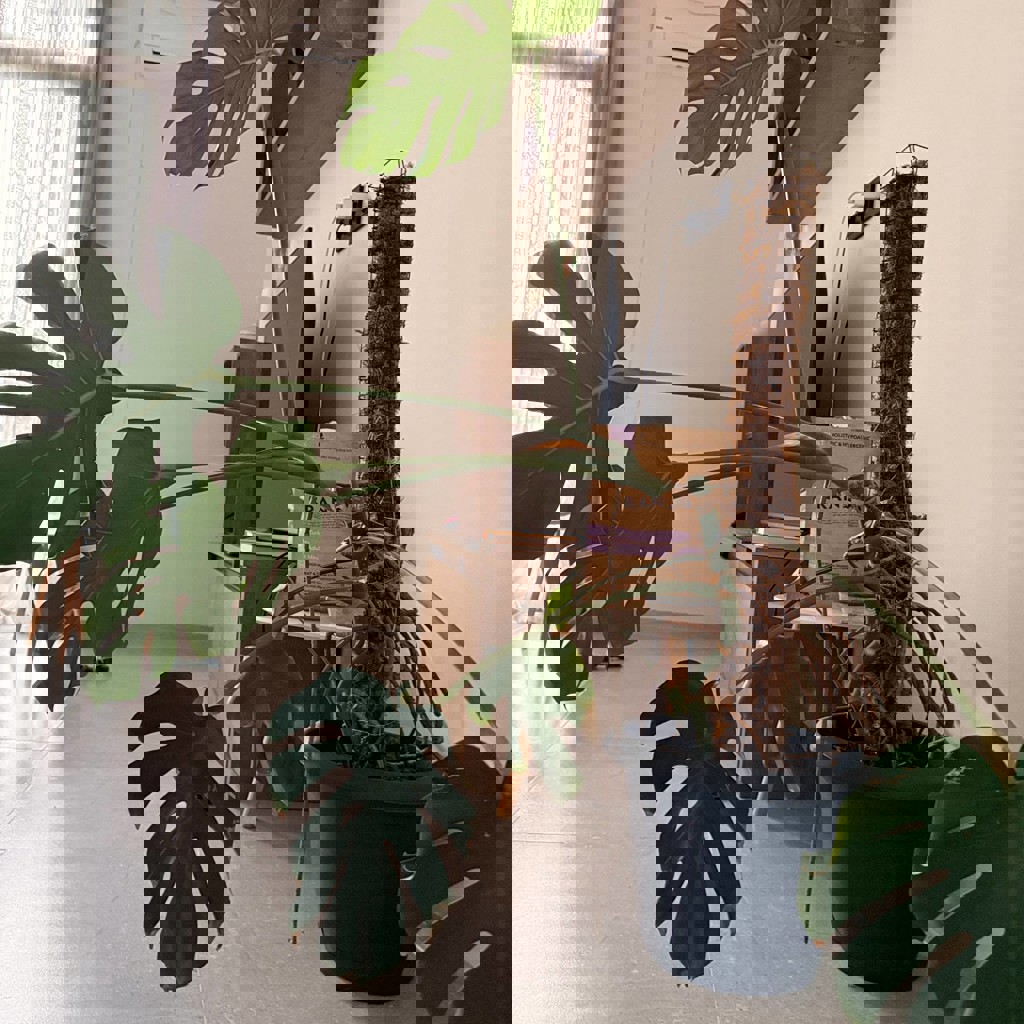 Красивая взрослая монстера с большими резными листьями, уже хорошо разрослась. Высота ~120 см, есть опора для роста. Листья здоровые, блестящие — отлично впишется в интерьер и сразу даст «вау-эффект».
