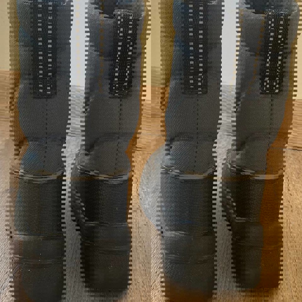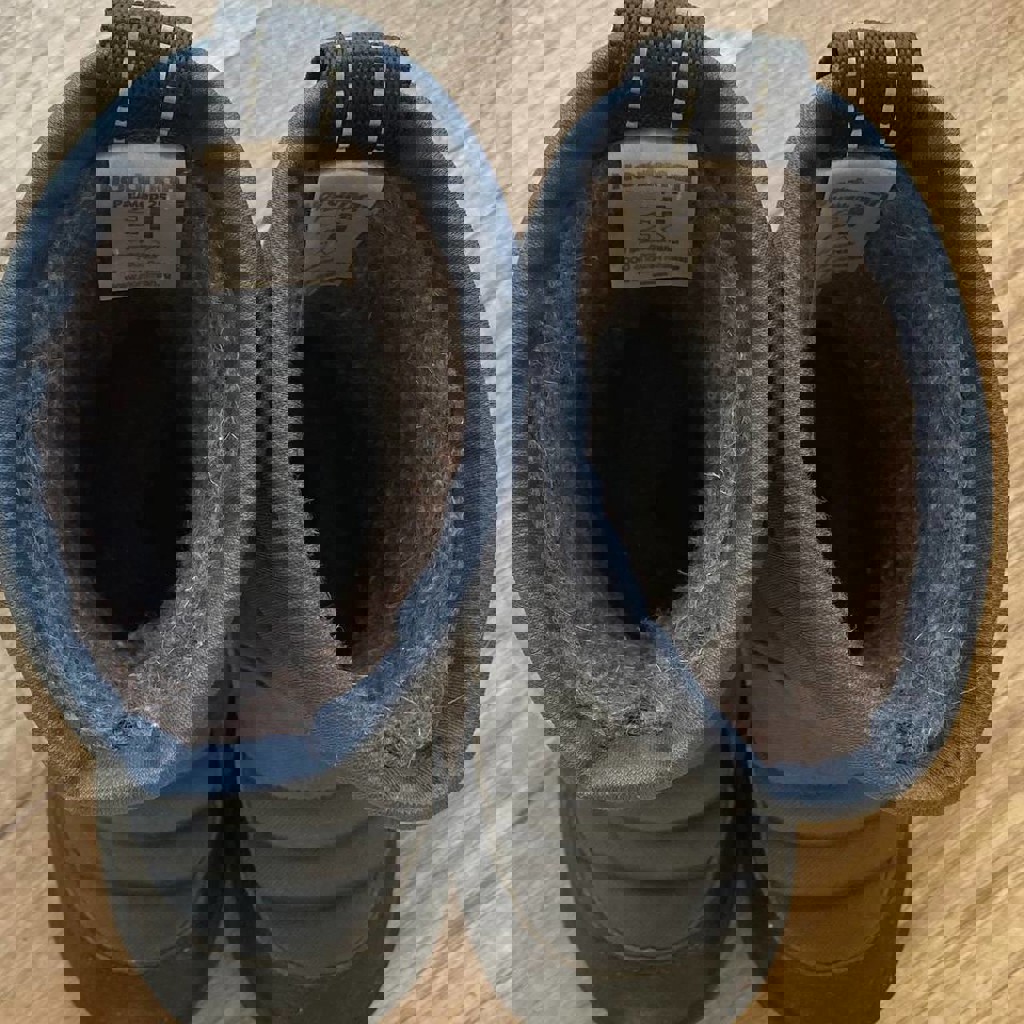 Зимние сапожки, цвет темно-синий. Водоотталкивающая пропитка, шерстяной мех внутри и стелька. Без застежки. Размер 25, длина стельки 16,8 см. Идеальное состояние.