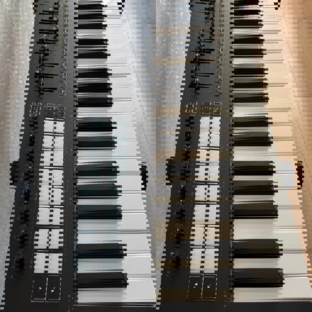 Клавиатура куплена в GeoVoice в октябре 2025 года. Пользовались редко. Полный комплект. В отличном состоянии, только есть царапины на задней панели от стойки.