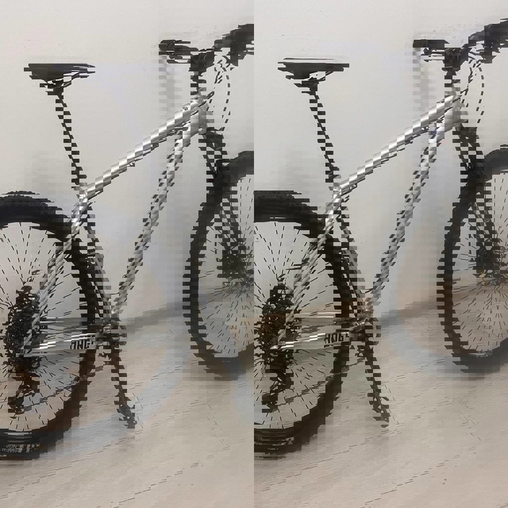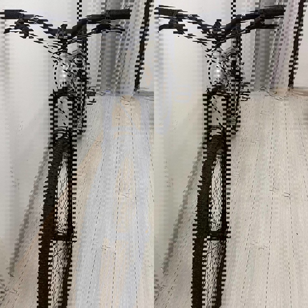 Хардтейл на базе рамы Octane One (NS) Hooner в цвете Chrome. навесное оборудование и вилка — новые, модельного ряда 2025 года. Состояние: Пробег около 200 км. Технических нюансов нет, царапин нету, байк готов к эксплуатации. Характеристики: Рама: Octane One (NS) Hooner, алюминий, цвет хром. Размер L/xl Вилка: SR Suntour XCR, ход 130 мм (воздушная). Трансмиссия: 12-скоростная SRAM SX Eagle. Дроппер: X-Fusion Manic Тормоза: Tektro, Комплектующие: Руль, вынос, рулевая колонка, зажимы и седло — сток от NS/Octane One. Геометрия: Рама под 29" колеса с заваленным углом рулевой (64 градуса), рассчитана на агрессивное катание.