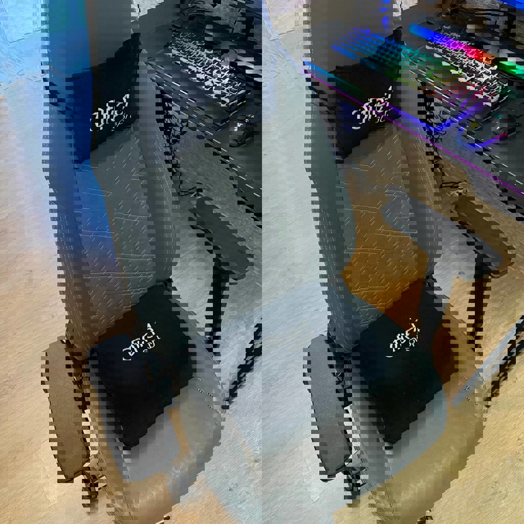 Состояние огонь, юзал аккуратно, всё работает как часы: качалка, газлифт, 4D-подлокотники — полный фарш. Единственный косяк — на сидушке небольшое расхождение по шву (на фото видно, Комплект полный: подушка под поясницу + подголовник.