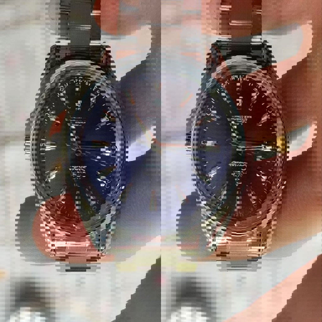 Элегантные часы в классическом стиле. Корпус и браслет из нержавеющей стали, надежный кварцевый механизм, календарь даты. Смотрятся дорого и аккуратно, подходят как на каждый день, так и под классическую одежду. Состояние хорошее.
