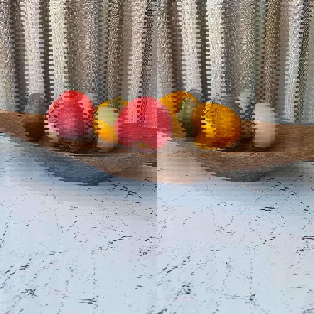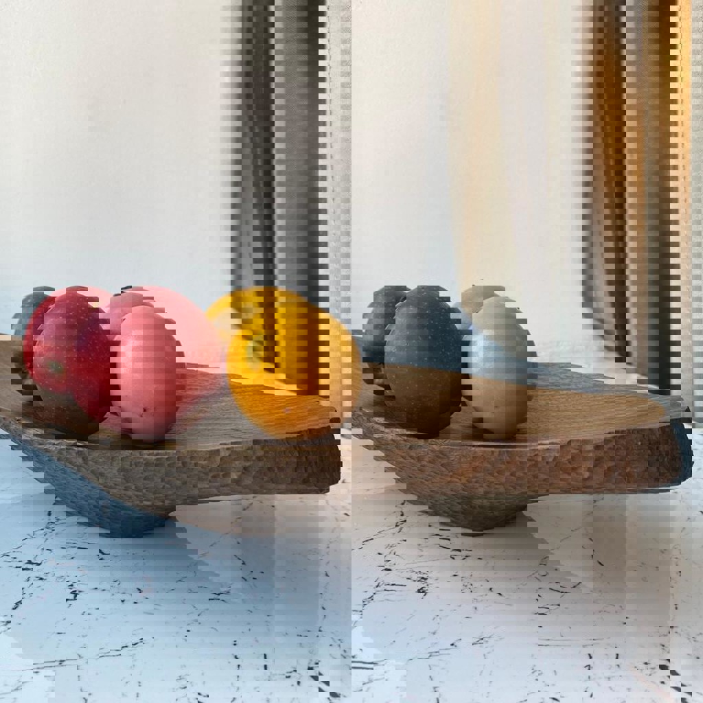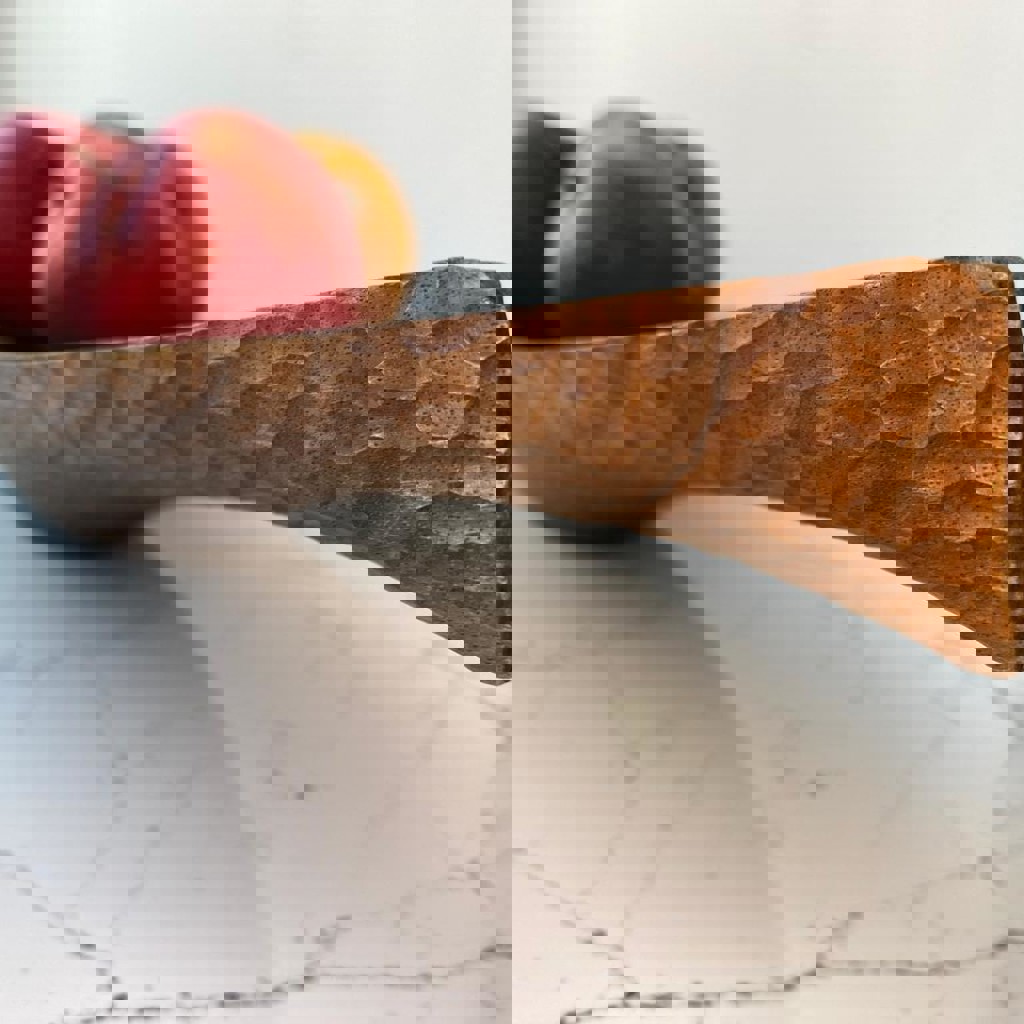 Большая ореховая тарелка. Полностью изготовлена вручную с помощью резцов и малых планок. Внешняя сторона текстурированная. Обработана итальянским маслом и воском. Размеры: 500 x 160 x 60 мм.