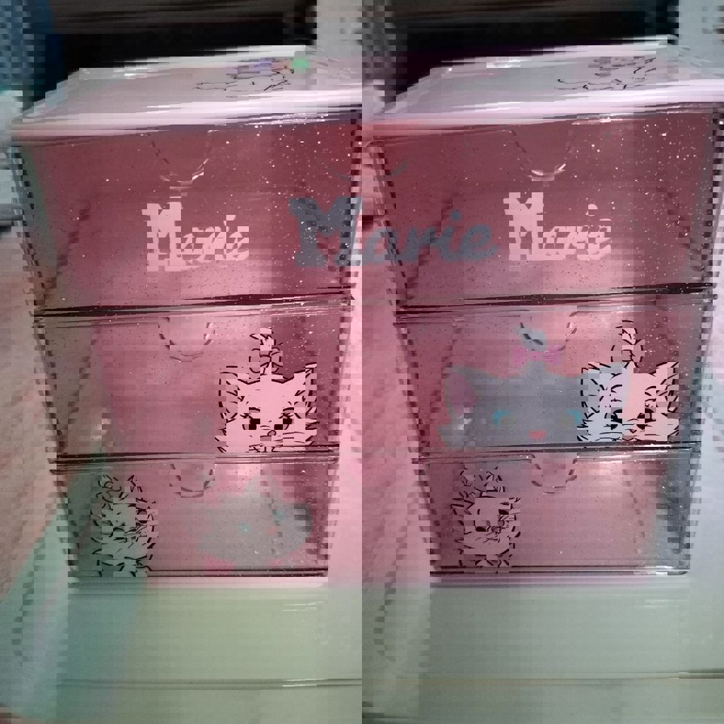 4. Органайзер розовый с котиками. 17/15/11 см. Толстый пластик. Цена 20 лари