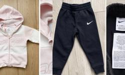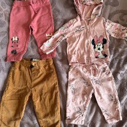 Детская осенне-зимняя одежда, размер 80-86. Включает 2 камбеза, непромокаемые утеплённые штаны, куртку с отстегивающимися рукавами, носки, шапку и 2 пары новых колгот.
