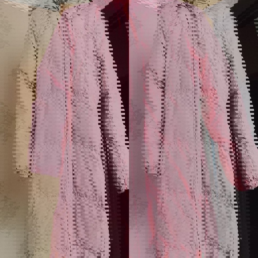 Теплое пальто нежно розового, пудрового цвета. Размер 140. Есть небольшие 2 пятнышка от воска (можно удалить - будет как новое).
