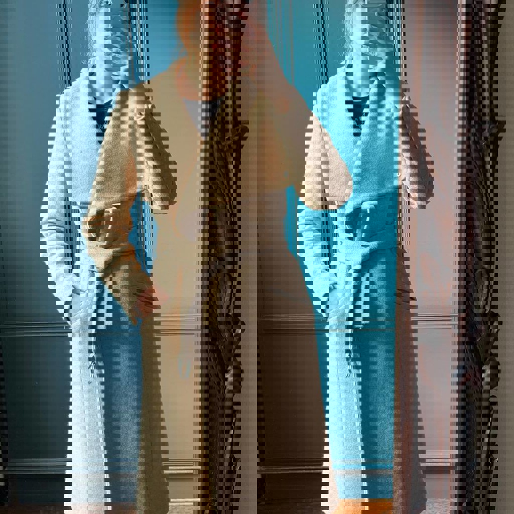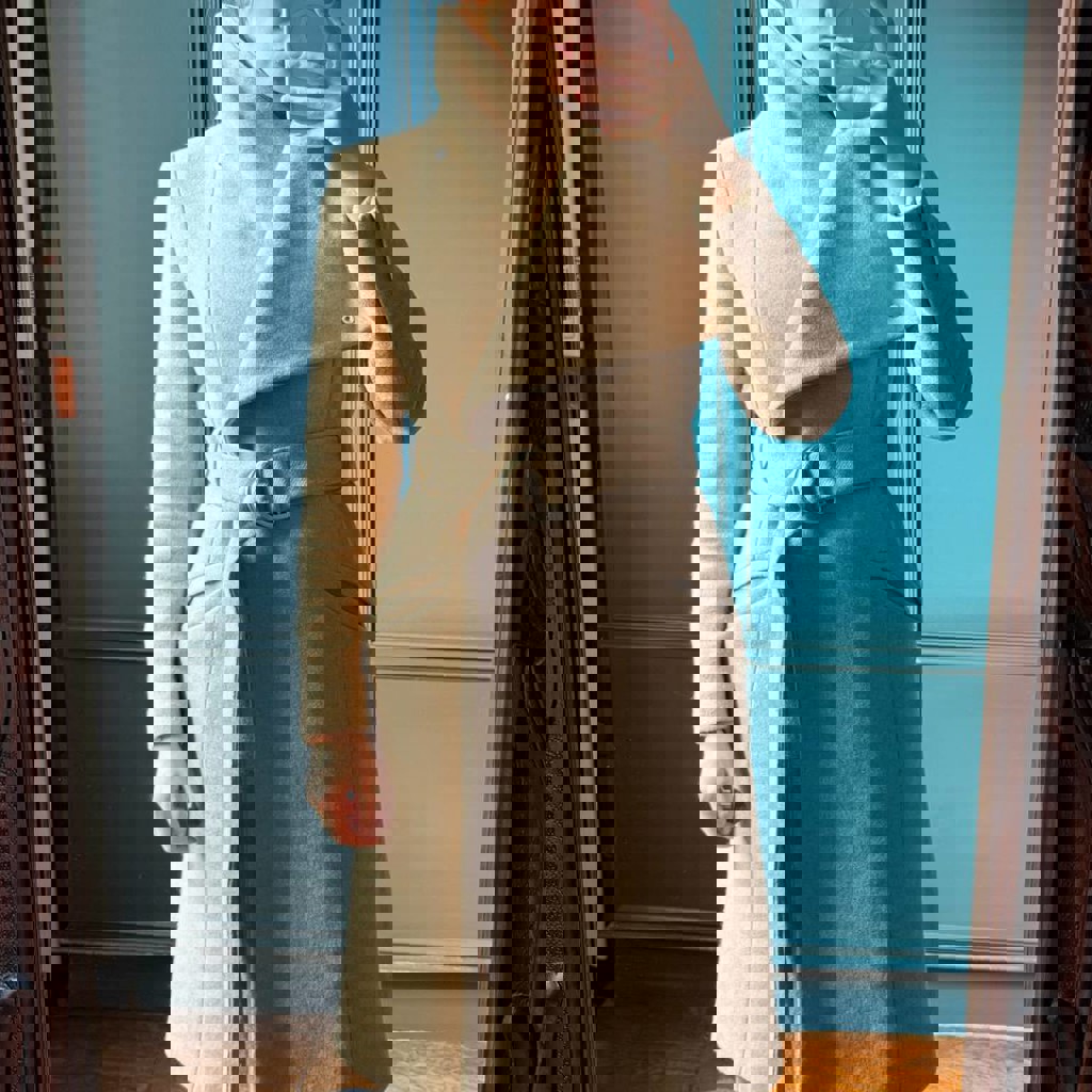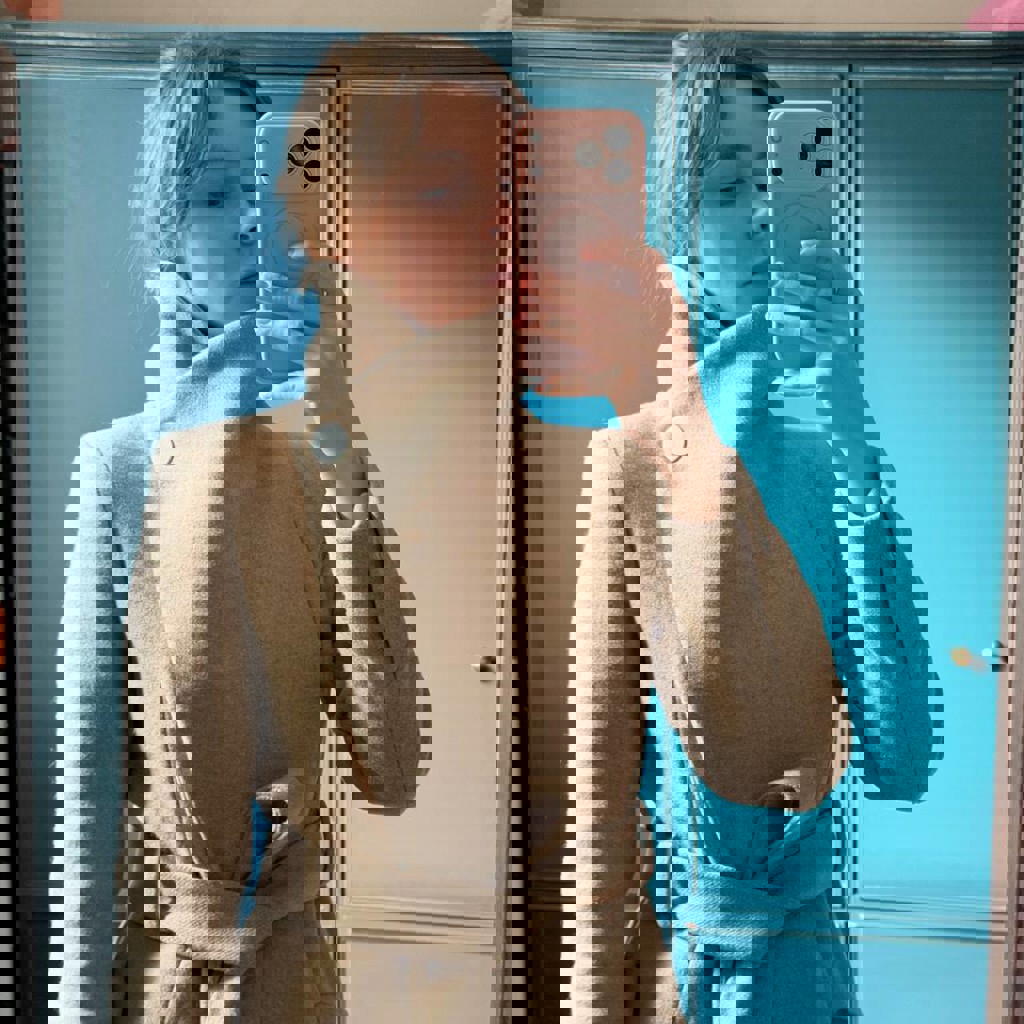 Размер S, но лучше будет на XS. В составе 64% шерсти. Мой рост 170 см, параметры 84-66-96.