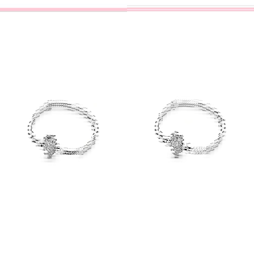 Оригинальный серебряный браслет Pandora Moments с фирменной застежкой в виде сердца, украшенной камнями (серебро 925 пробы).