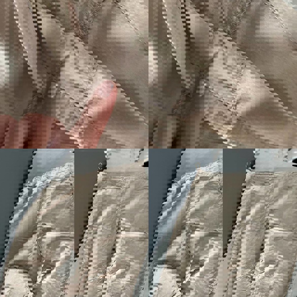 Бежевые лёгкие штаны оверсайз, удобные. Утягиваются сверху и снизу. Размер S.