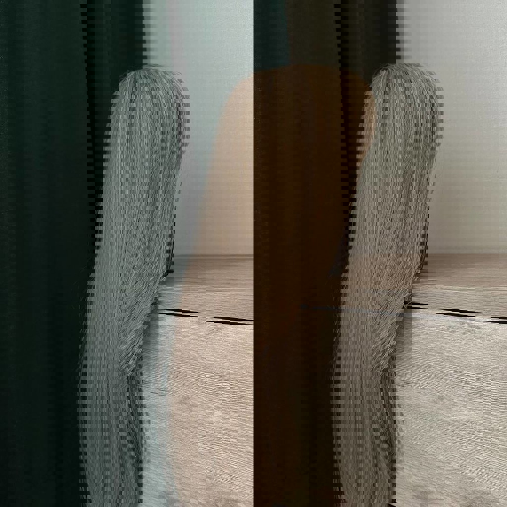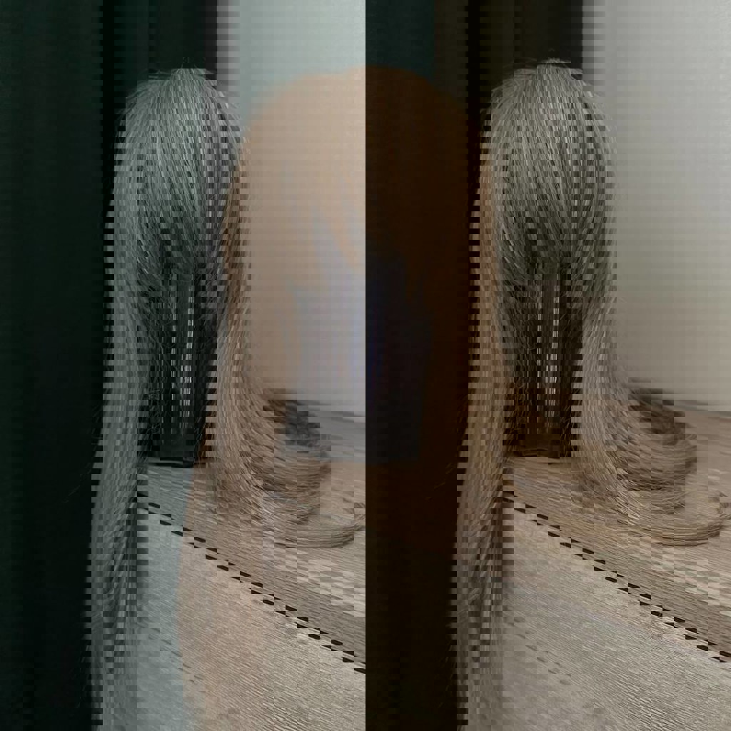 Искусственный парик в идеальном состоянии, был надет пару раз. Очень красивого светлого, натурального оттенка. Держится на голове крепко, легко расчесывается. Длина от макушки: ~48-50 см.