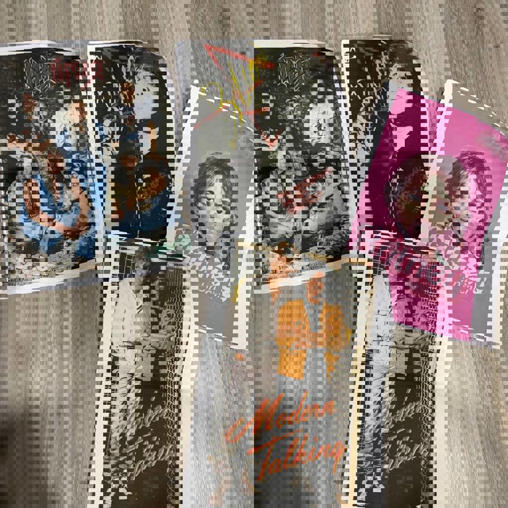 Продаю набор для вечеринки в стиле 90-х: баннер 180×240, надувные бумбокс и телефон, ретро-украшения (2 шт.) и бусы (4 шт.), плакаты со звёздами тех лет. В подарок ручная растяжка из цветного картона.