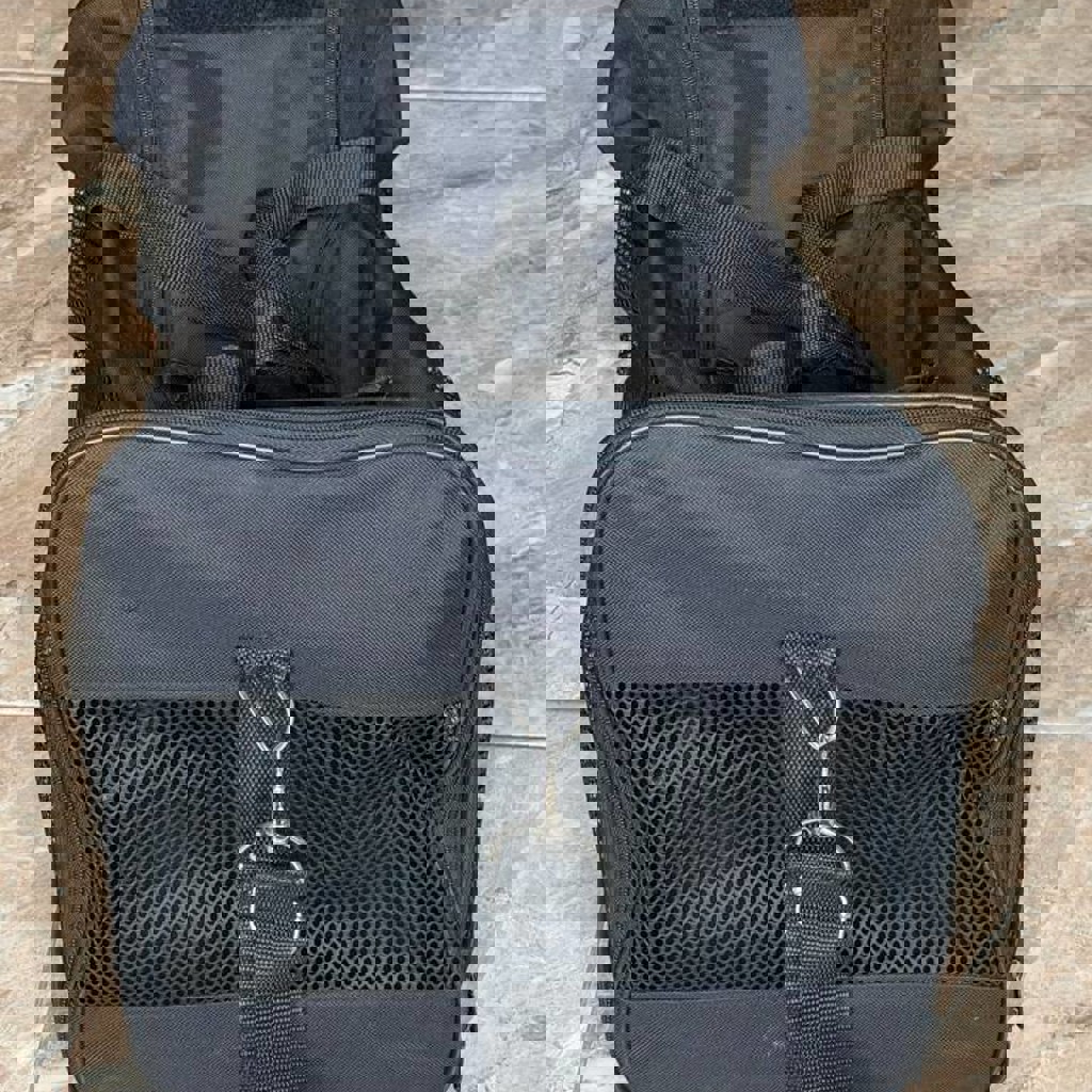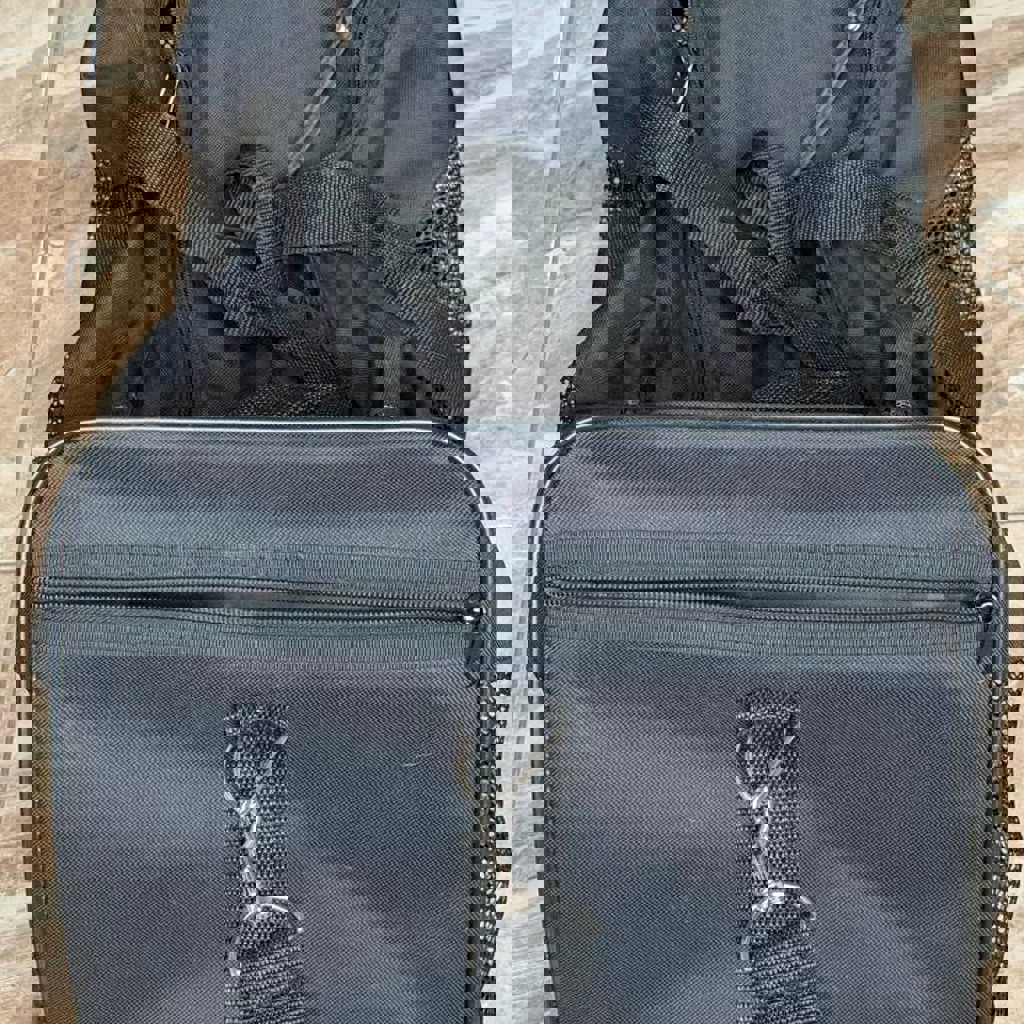 Переноска для собаки Trixie — прозрачная сетка по трем сторонам, короткие ручки и длинный ремень. Есть отдельный карман для документов. Размер 50х30х30 см. Есть нюанс: вылезла спица внутри, нужно зашить (допфото по запросу).